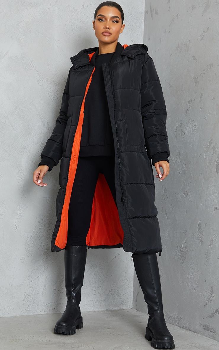 Take your outfit of the day to new heights with this must-have women's puffer jacket, we're obsessed. Featuring a black padded material with a contrasting lining, a zip fastening and a maxi length, how could you resist? A hooded puffer jacket is essential this season and this one is perfect to finish off your look in style. Simply team this long with comfy bottoms, a sweatshirt and chunky boots for the ultimate off-duty fit.Length approx 110.5cm/43.5inch (Based on a sample size UK 8)Model wears size UK 8/ EU 36/ AUS 8/ US 4Model Height - 5ft 9inchp]:!mb-0inch>Category: OuterwearProduct type: Puffer CoatColor: BlackMaterial: ShellDesign: PlainOccasion: Day