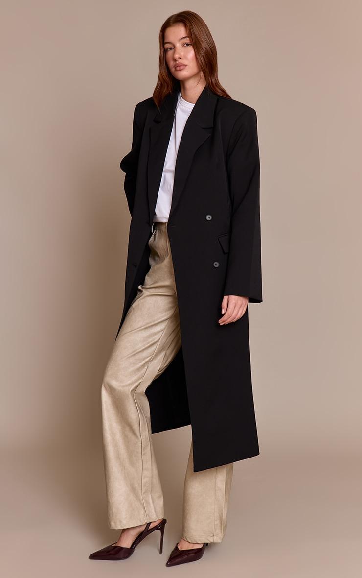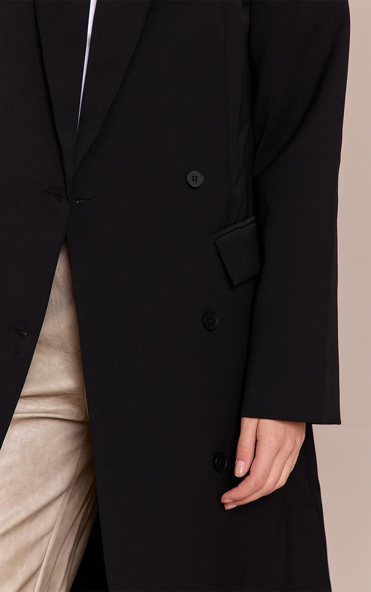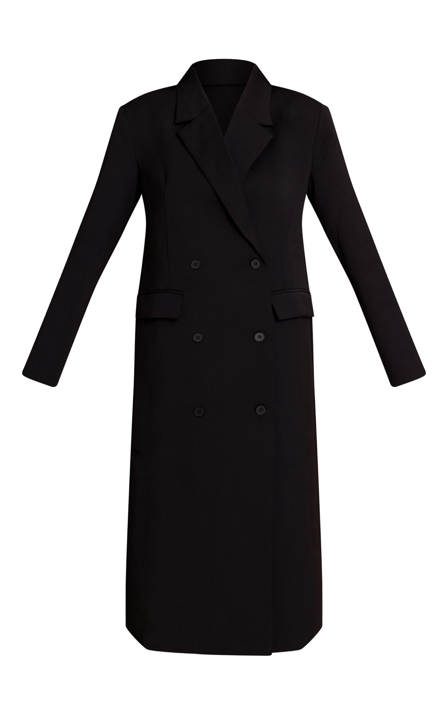 Delivering undisputed style, the black maxi tailored double breasted jacket is your new go-to. It showcases a sharply tailored silhouette, featuring classic notched lapels and a double-breasted button fastening. Perfect for confident daily moments, from power meetings to refined city strolls. Team it with sleek black pants, black high heels, and a minimal black shoulder bag for an elevated aesthetic.Length approx 124.5cm/49inch (Based on sample size US 4)Model wears size UK 8/ EU 36/ AUS 8/ US 4Model Height - 5ft 9inchp]:!mb-4inch>Brand: PrettyLittleThingCategory: OuterwearProduct type: TrenchColor: BlackMaterial: Tailored WovenOccasion: Day