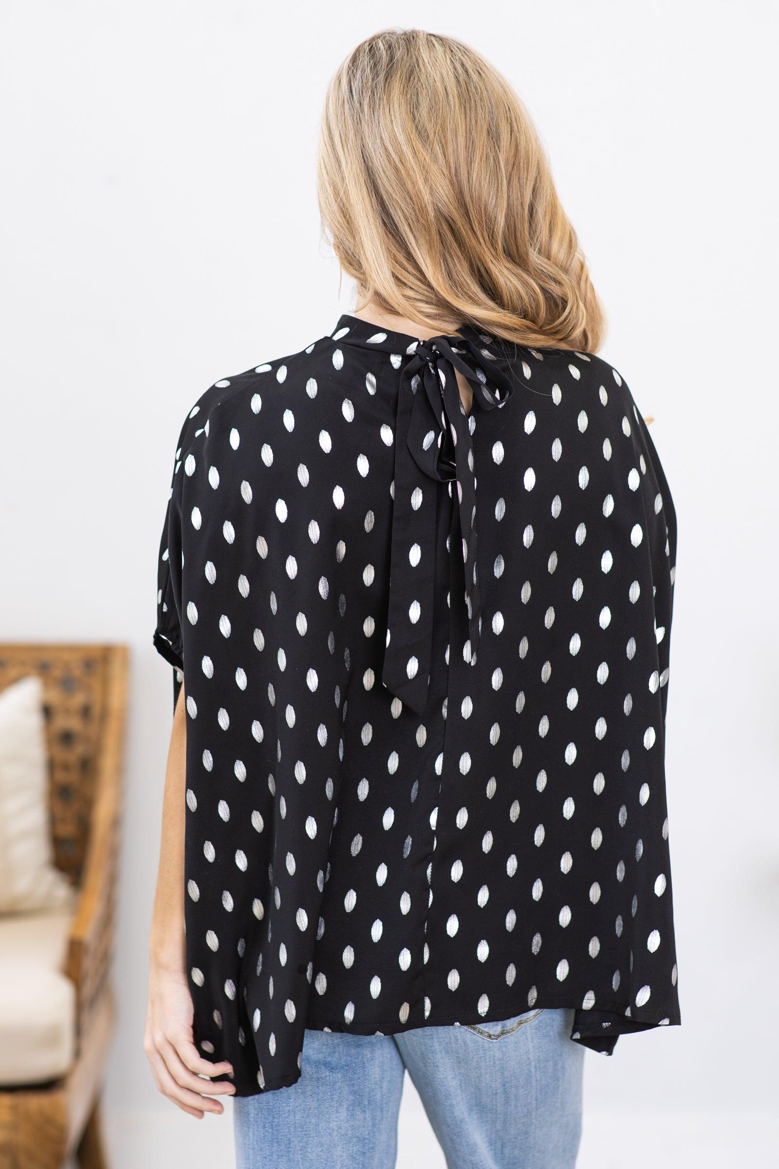 Product Details Colors: Black, Silver Metallic Print: Solid Neckline: Mock Sleeve: Short Sleeve Hemline: Straight Brand: Straight Material and Care 100% Polyester Machine Wash Cold Tumble Dry Low Size and Fit Medium: Bust 66" Waist 64" Length 26.5" Large: Bust 68" Waist 66" Length 27" X Large: Bust 70" Waist 68" Length 27.5" Photo model is 5'4 and wearing a size medium Video model is 5’3 and wearing size small