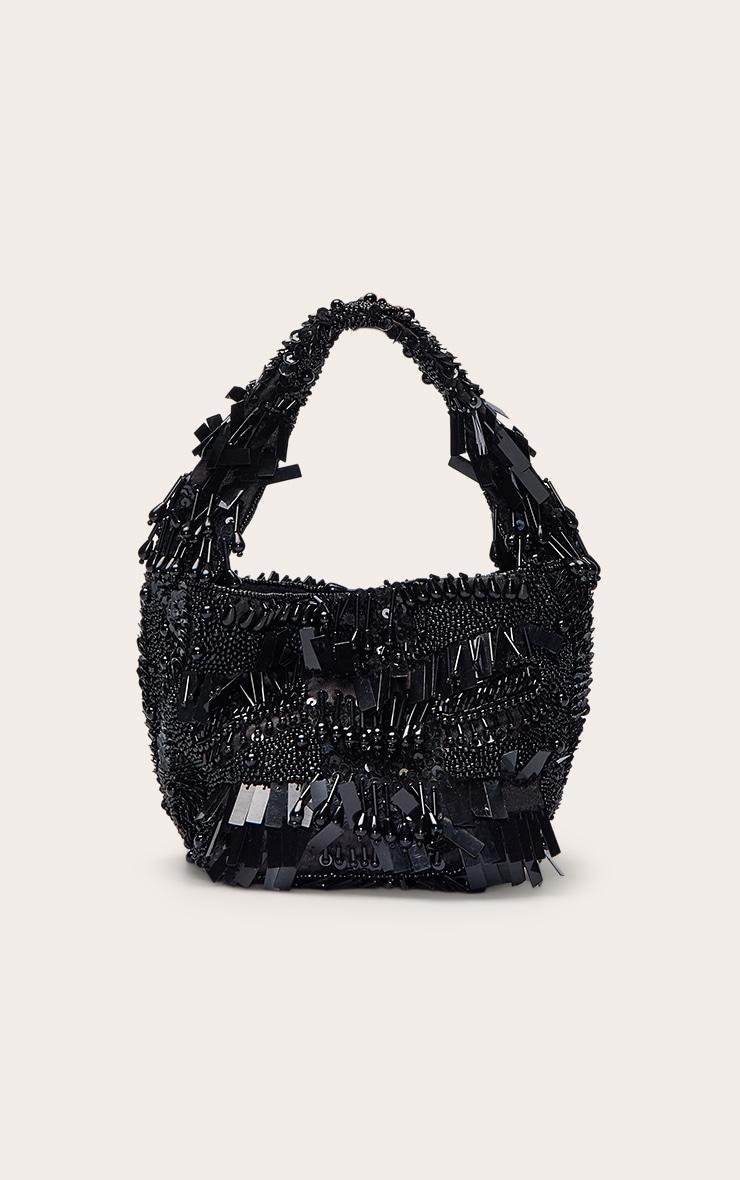 Accentuate your evening look with a refined, artful finish. The black ornate sequin beaded bag is your definitive accessory for after-dark allure, its compact silhouette entirely covered in intricate beading and shimmering sequins that catch the light with every move. The detailed handle perfectly complements its unique, fringed embellishments, creating a piece designed to captivate. Carry this statement bag with a sleek black midi dress and sharp black heels, finishing your ensemble with a subtle gold ring for an elevated aesthetic that’s truly unforgettable. Approx Height: 10cm/4inch Approx Width: 20cm/8inch Approx Depth: 5cm/2inchp]:!mb-4inch>Brand: PrettyLittleThingCategory: AccessoriesProduct type: Mini BagColor: BlackMaterial: SequinOccasion: Evening