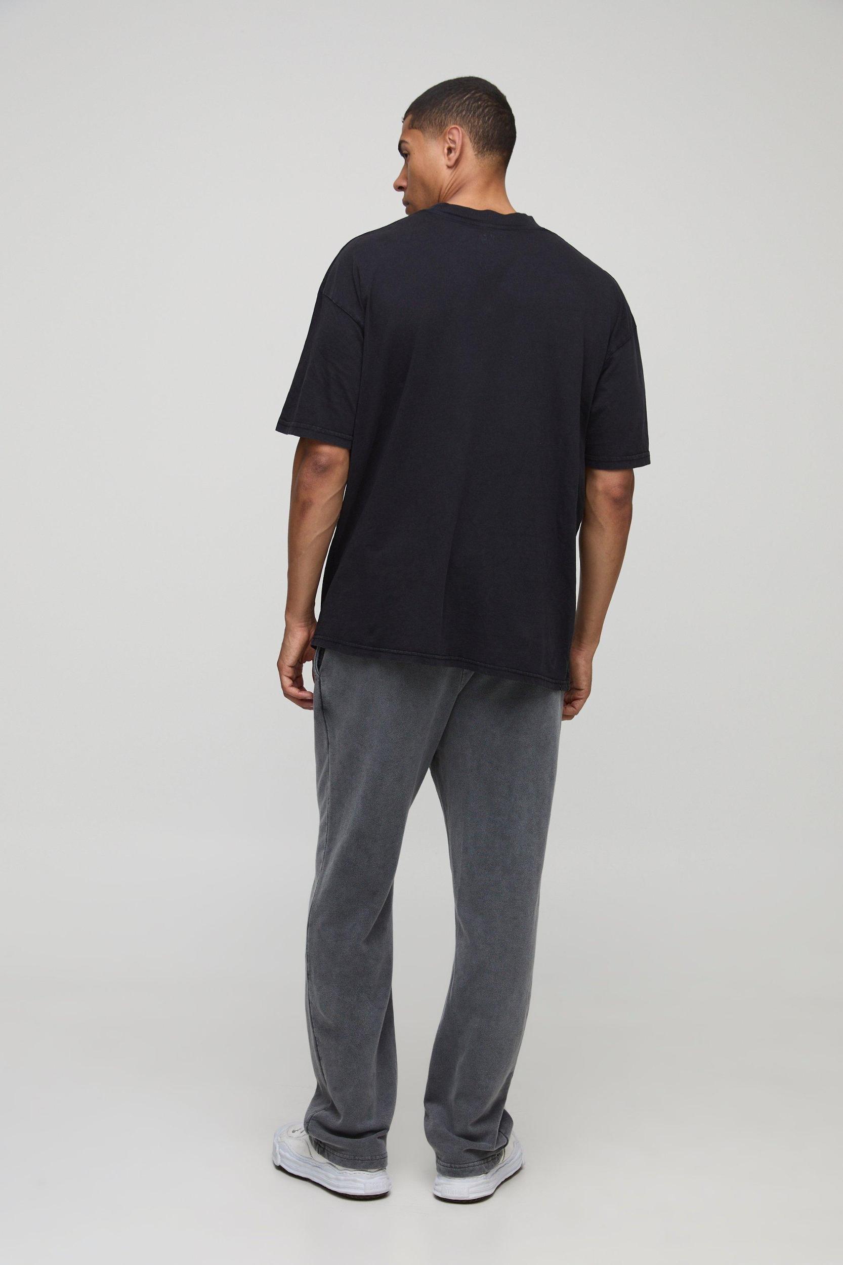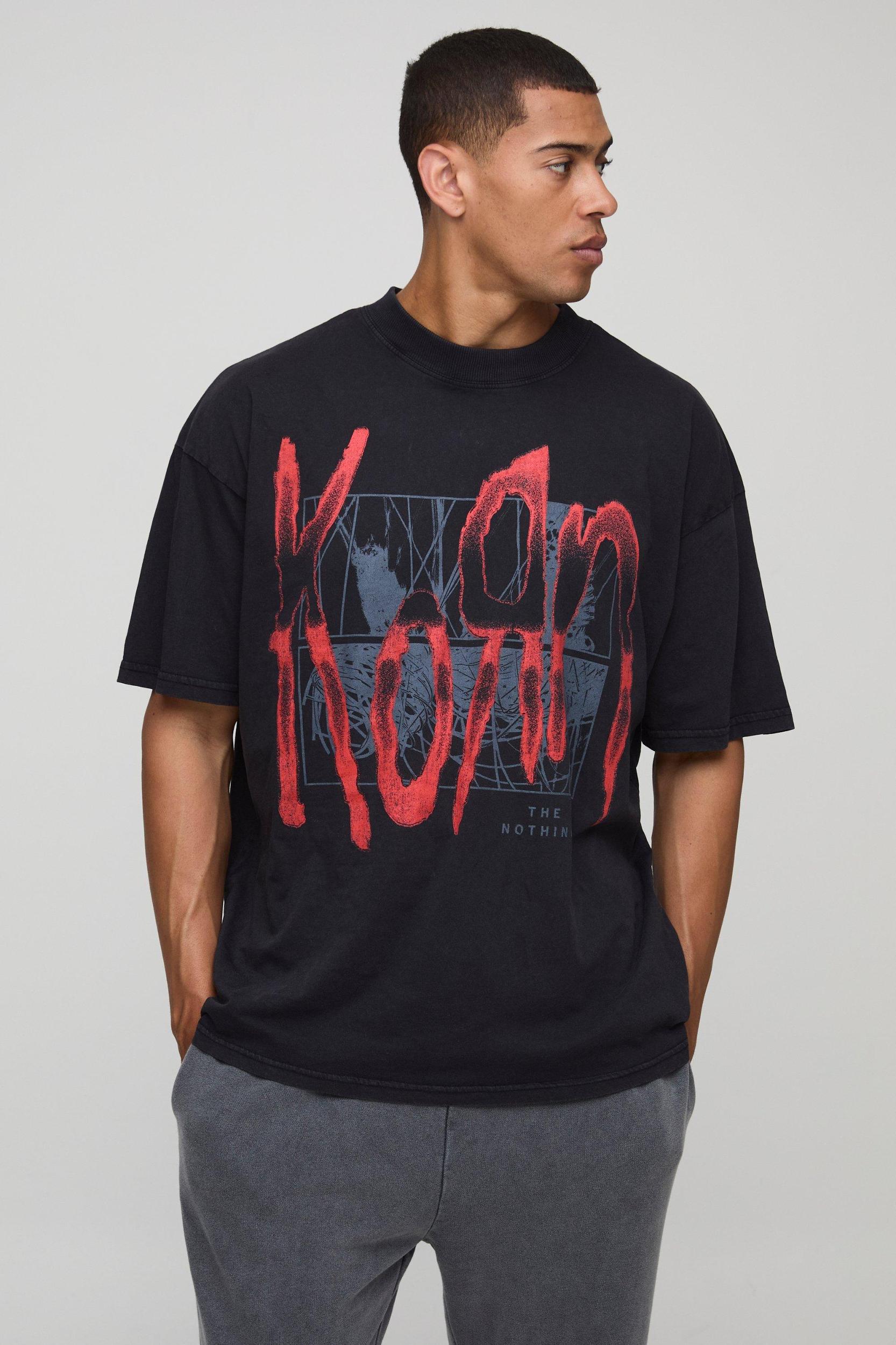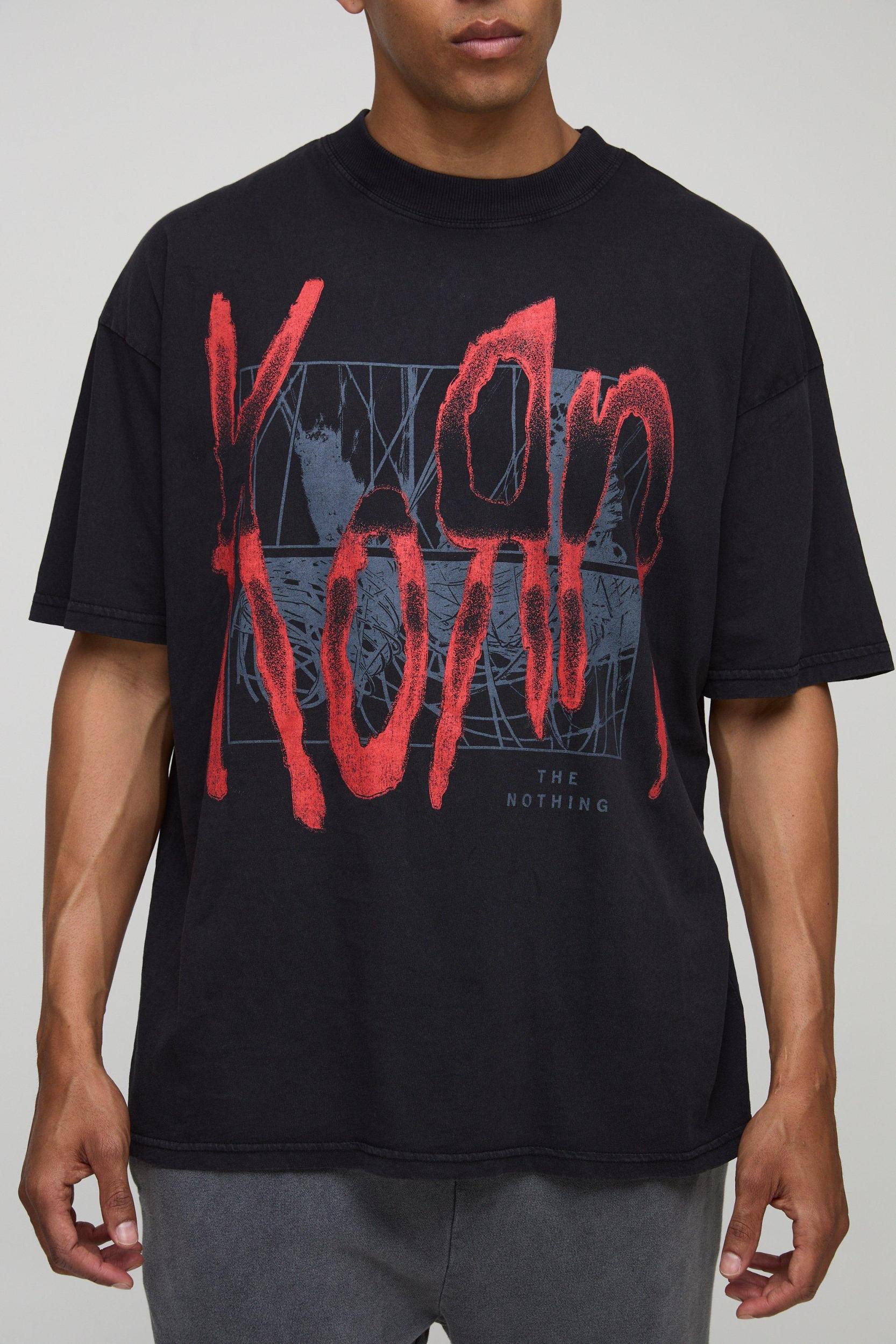 Black Oversized Extended Neck Korn Acid Wash License T-Shirt | boohooMAN USA