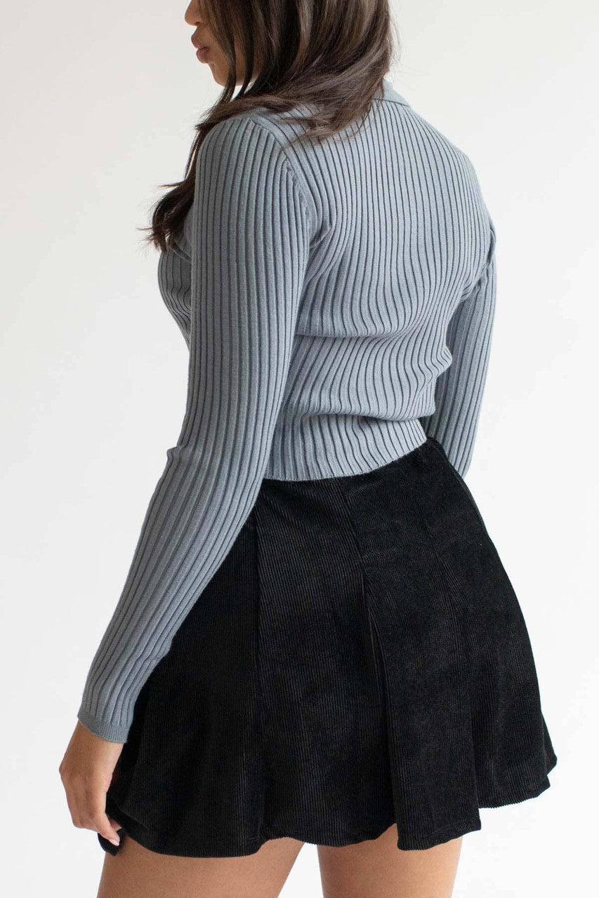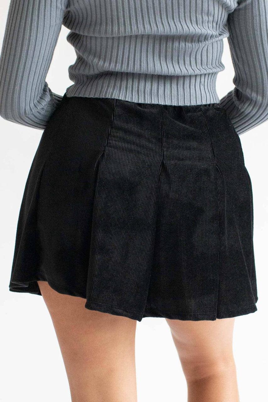 Black Pleated Corduroy Skater Skirt