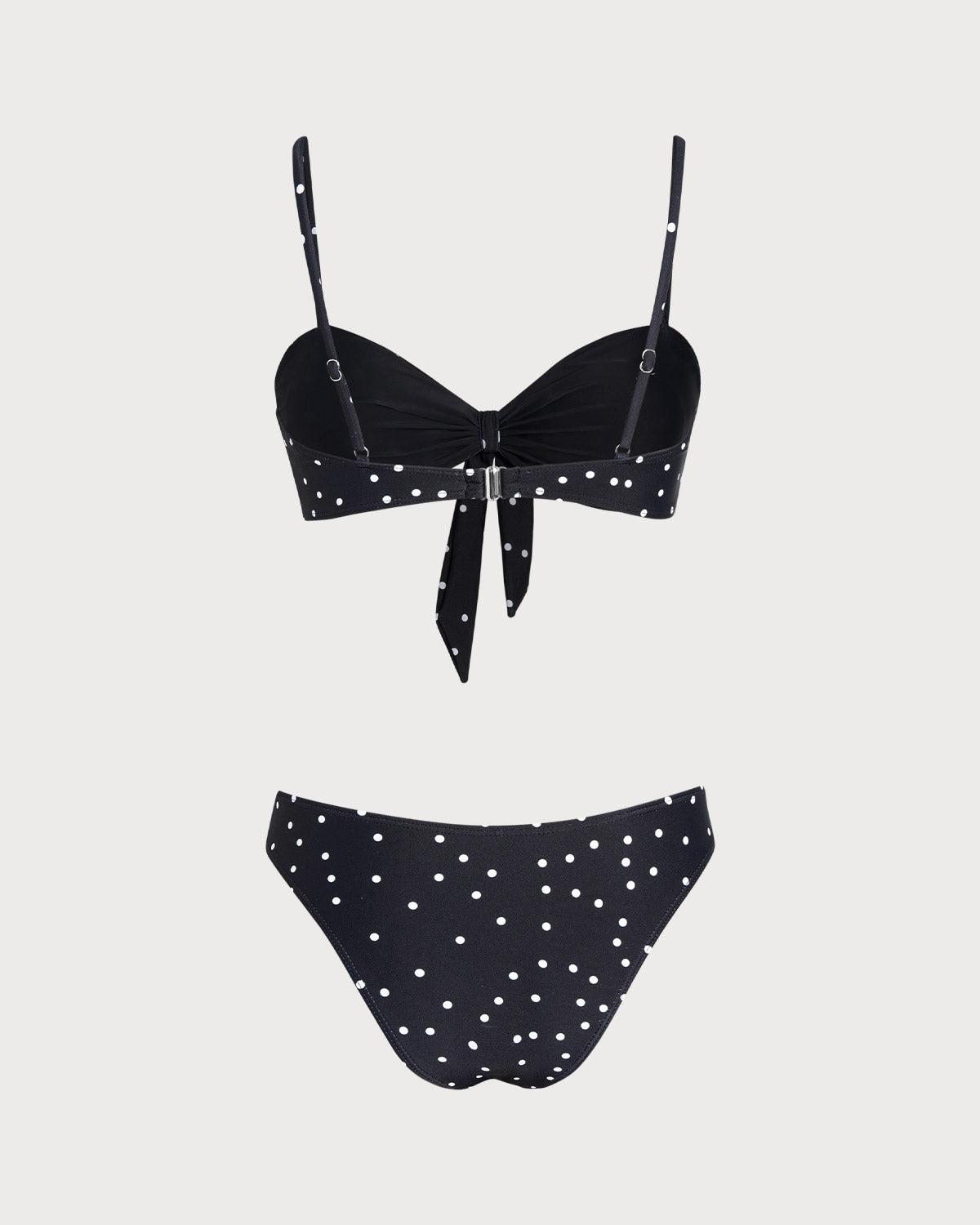 - Back Neckline: Strap - Fabric Stretch: High Stretch - Waist: Natural Waisted - Closure Type: Button Fly - Pattern Type: Polka Dot - Neckline: Straps - Fabric: Polyamide 82.0%, Spandex 18.0% - Lining: Polyester 95.0%, Spandex 5.0% - Leg Opening: High Cut Leg - Padding: Removable Soft Cups - Bottom Coverage: Minimal Bottom Coverage - Bra Coverage: 3/4 Cup - Top Style: Bandeau - Pattern Style: print