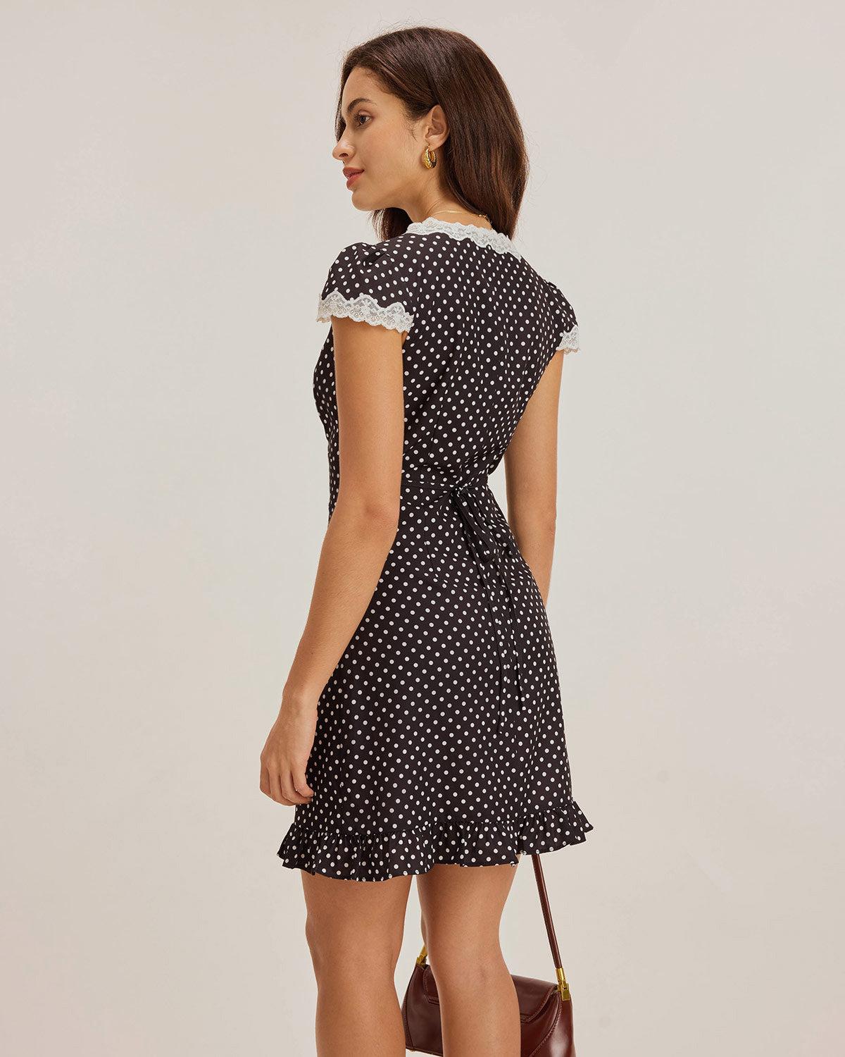 - Occasion: Daily - Style: Elegant - Fabric Stretch: No Stretch - Waist: High Waisted - Sleeve Length: Short Sleeves - Sleeve Type: Cap Sleeve - Pattern Type: Polka Dot - Embellishment: Lace, Splicing, Contrasting colors - Silhouette: A-Line - Fabric: Recycled Polyester 92.0%, Spandex 8.0%