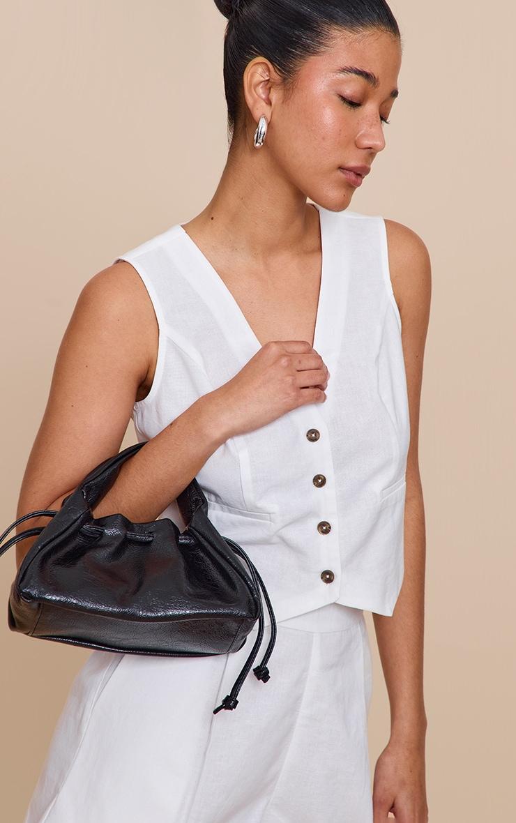 Level up your look with this black pu drawstring mini bag. Made with black PU material, this bag features a drawstring fastening and a chic mini size. Approx Height: 10cm/4inch Approx Width: 20cm/8inch Approx Depth: 5cm/2inchp]:!mb-4inch>Brand: PrettyLittleThingCategory: AccessoriesProduct type: Mini BagColor: BlackOccasion: Day