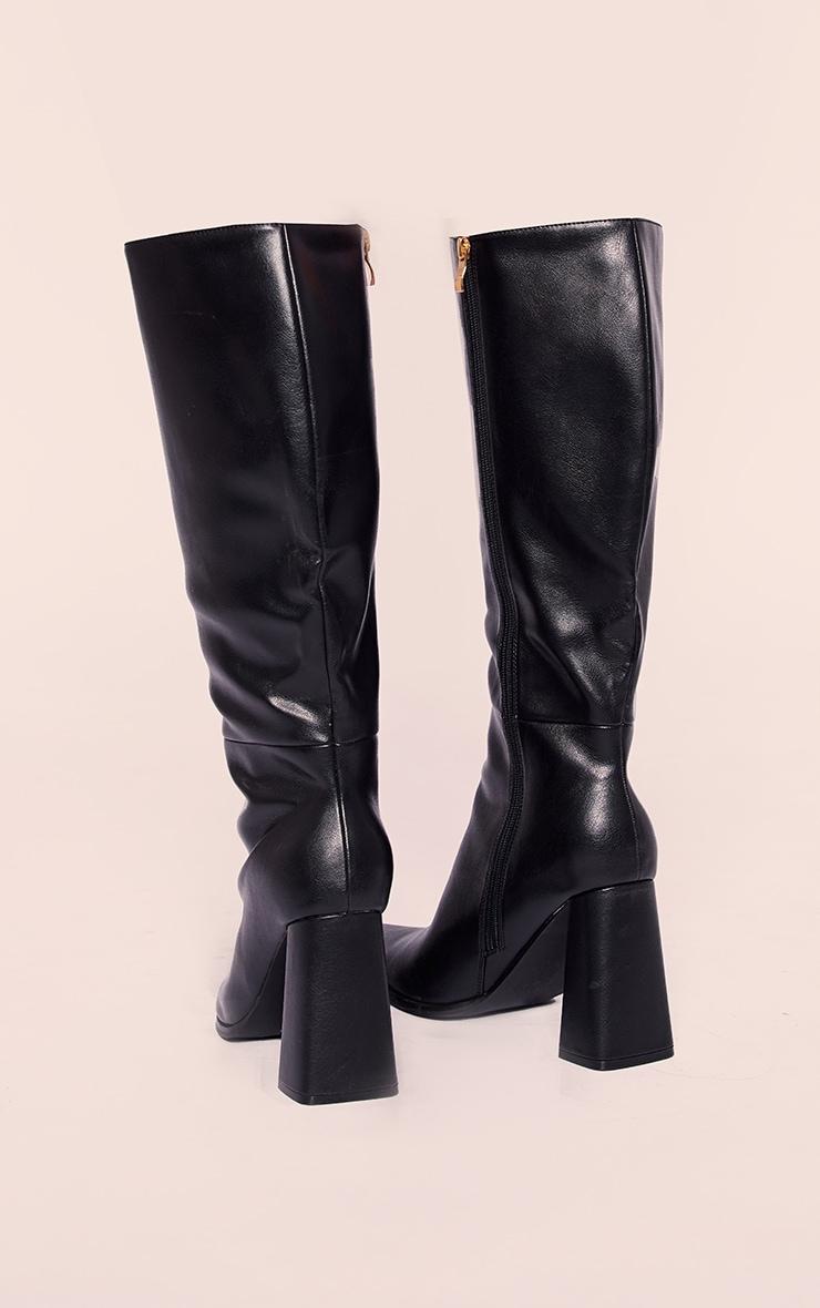 These black PU point toe knee high block heeled boots are at the top of our new season hit list. Brought to you in a black hue PU material with a point toe design, block heels and a knee high style we just can't get enough of, how can you go wrong? Simply add these heeled boots to your outfit of the day for a statement finishing touch to any look. PU Zip fastening 4inch Heel p]:!mb-0inch>Category: FootwearProduct type: Heeled Knee High BootsColor: BlackOccasion: Day