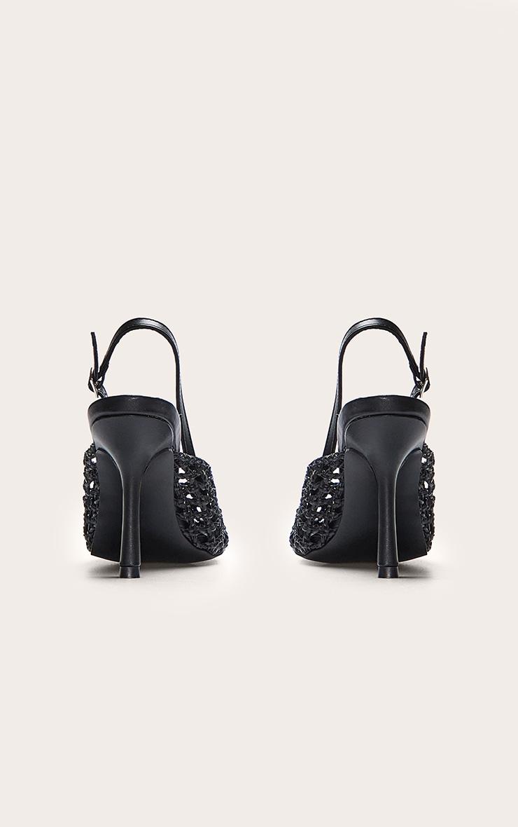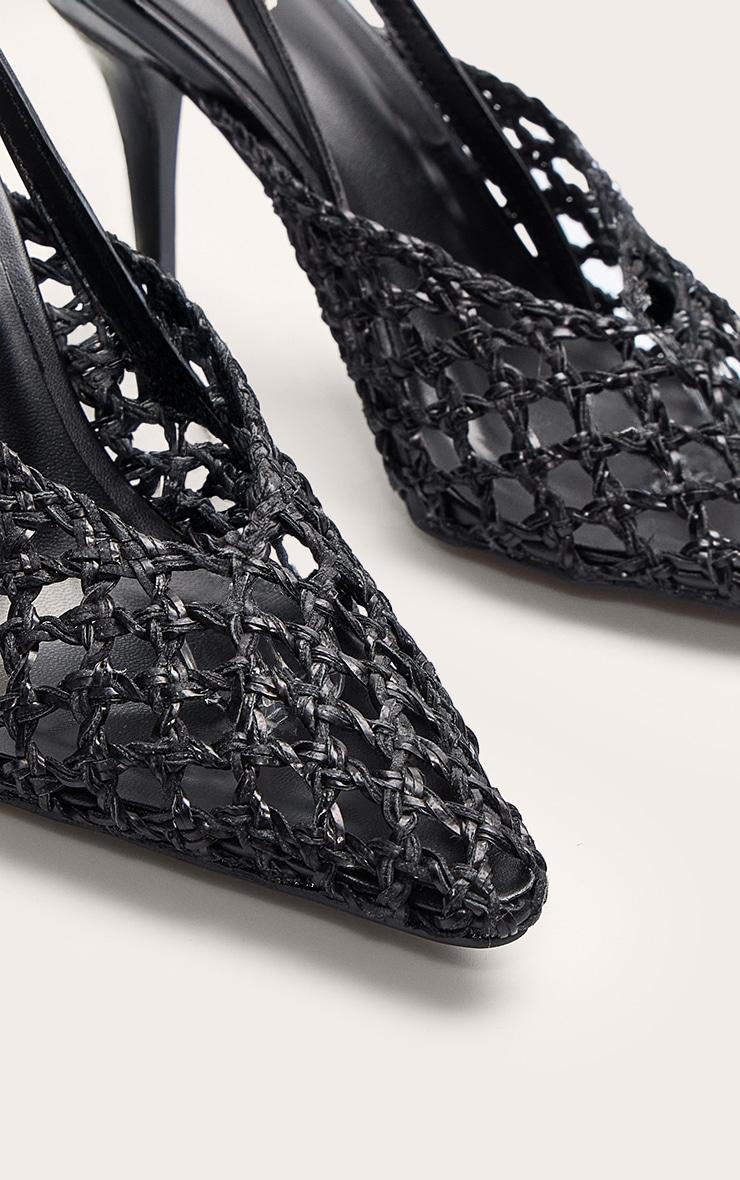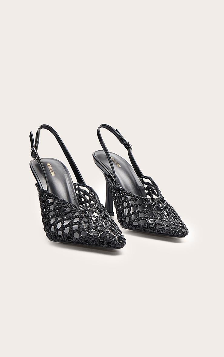 Keep it sleek this season in these black pu point toe woven high heeled sling back courts. A modern twist on a classic silhouette, these 4 inch heels have a woven design with a chic pointed toe. Add them to any day to night look for a flawless finish.p]:!mb-4inch>Category: FootwearProduct type: CourtsColor: BlackOccasion: Evening