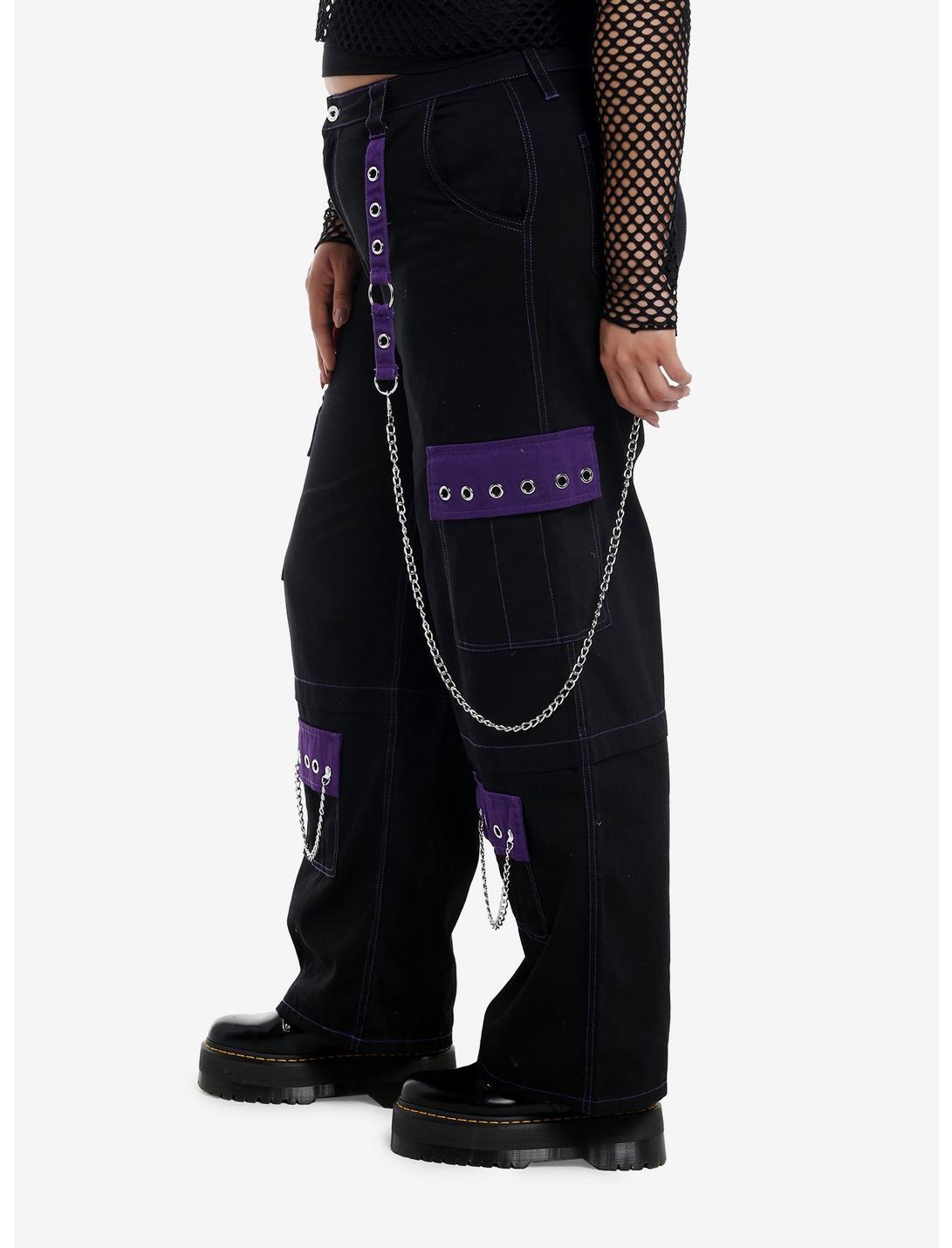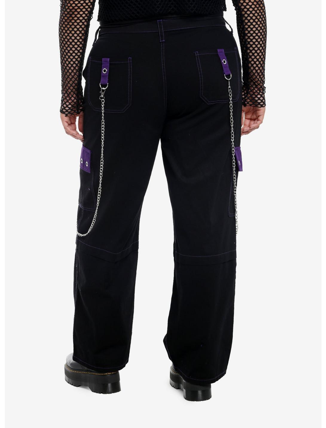 Black & Purple Grommet Strap Carpenter Pants Plus Size