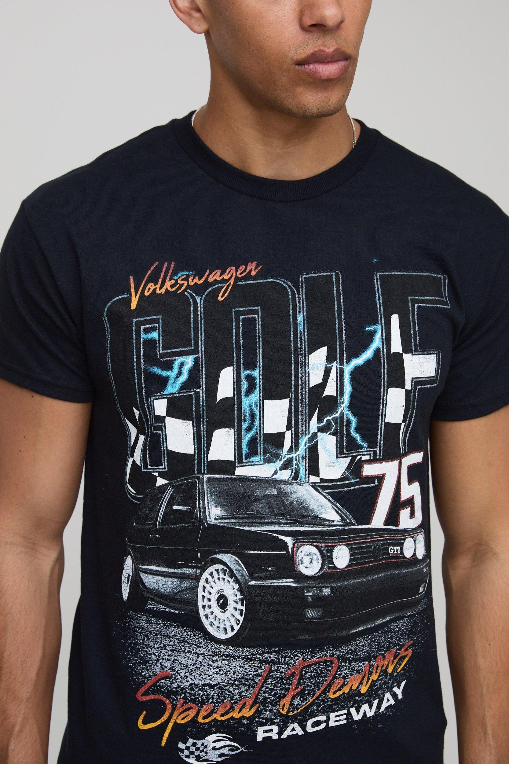 Black Regular Fit Volkswagen Golf License Printed T-Shirt | boohooMAN USA