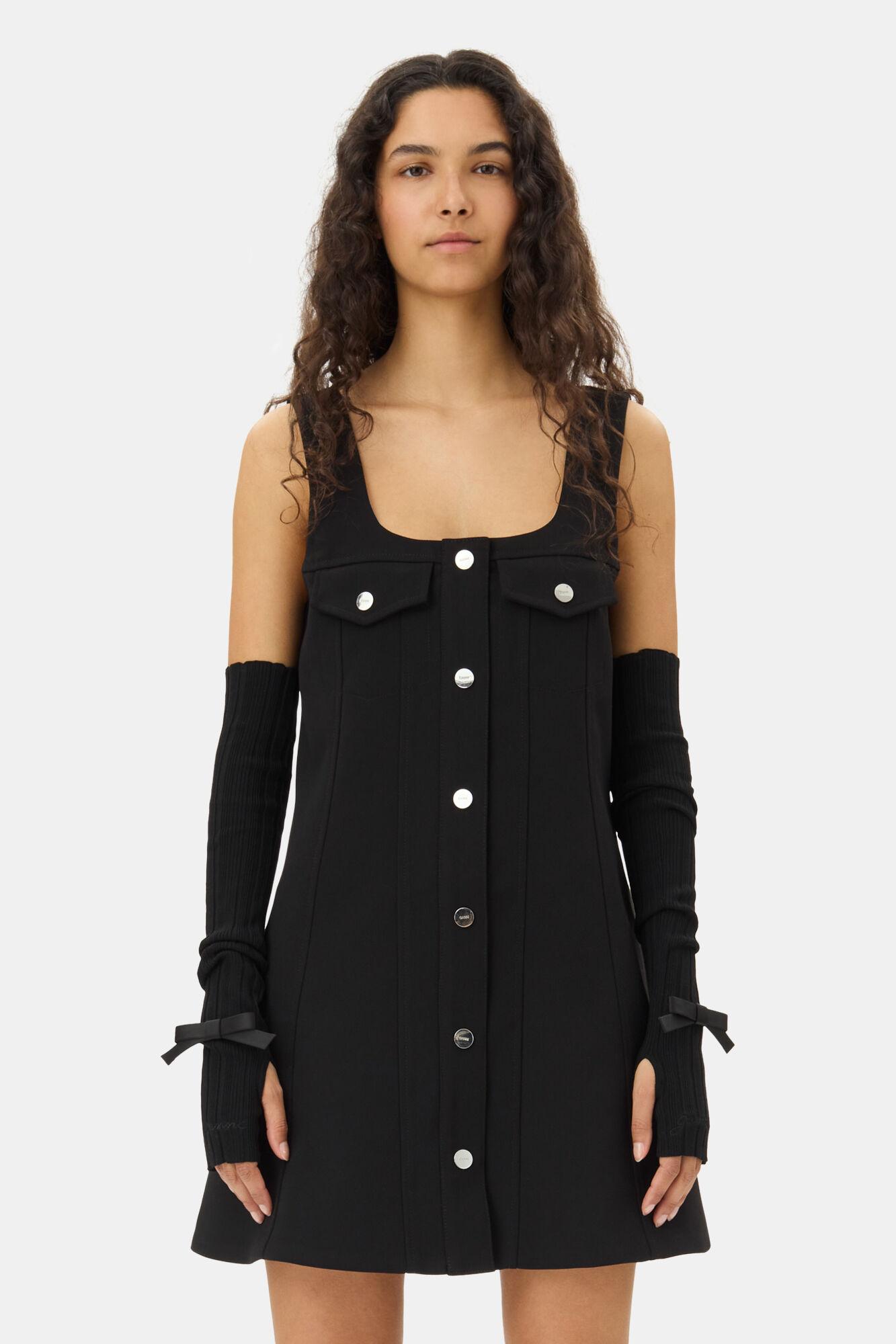 These Black Rib Wrist Warmers feature a ribbed knit fabric, a cutout for the thumb, a bow detail, and an embroidered GANNI logo.