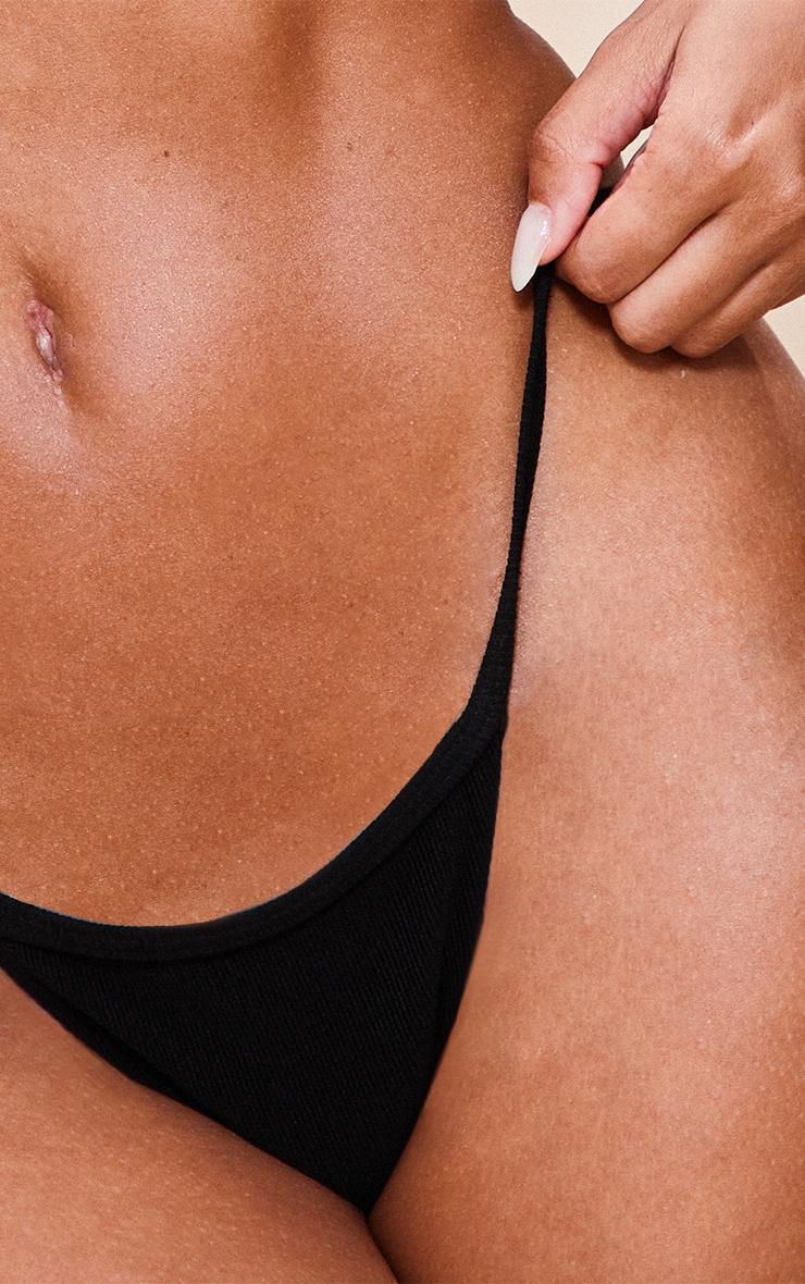 Black Ribbed Tanga Bikini BottomsThese bikini bottoms are essential for the warmer days. Featuring a black ribbed fabric with a tanga style fit, team these with the matching bikini top and sunnies for a look we're obsessing over.Length approx 17cm/7inch (Based on a sample size UK 8)Model wears size UK 8/ EU 36/ AUS 8/ US 4Model Height - 5ft 6inchp]:!mb-0inch>Category: SwimwearProduct type: Tanga Bikini BottomColor: BlackMaterial: SwimDesign: Plain