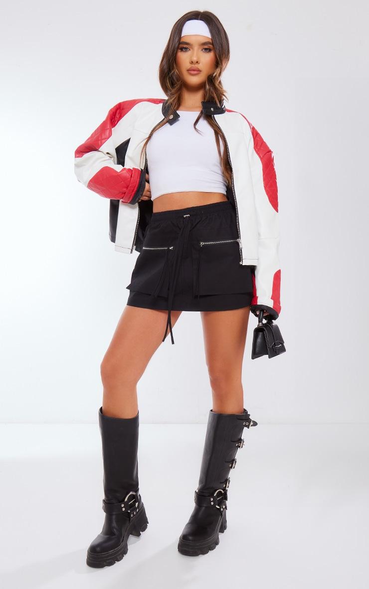 Stay on trend for the new season and beyond in this black ripstop pocket front cargo mini skirt. Brought to you in a black hue ripstop material with pocket front detailing, cargo design we just can't get enough of right now and a mini fit, you really can't go wrong. Style this mini skirt with a cropped tee, chunky boots and a faux leather jacket for a fierce off-duty look that won't go unnoticed. Length approx 33cm/13inch (Based on a sample size UK 8) Model wears size UK 8/ EU 36/ AUS 8/ US 4Model Height - 5ft 7inchp]:!mb-0inch>Category: BottomsProduct type: Cargo SkirtColor: BlackOccasion: Day