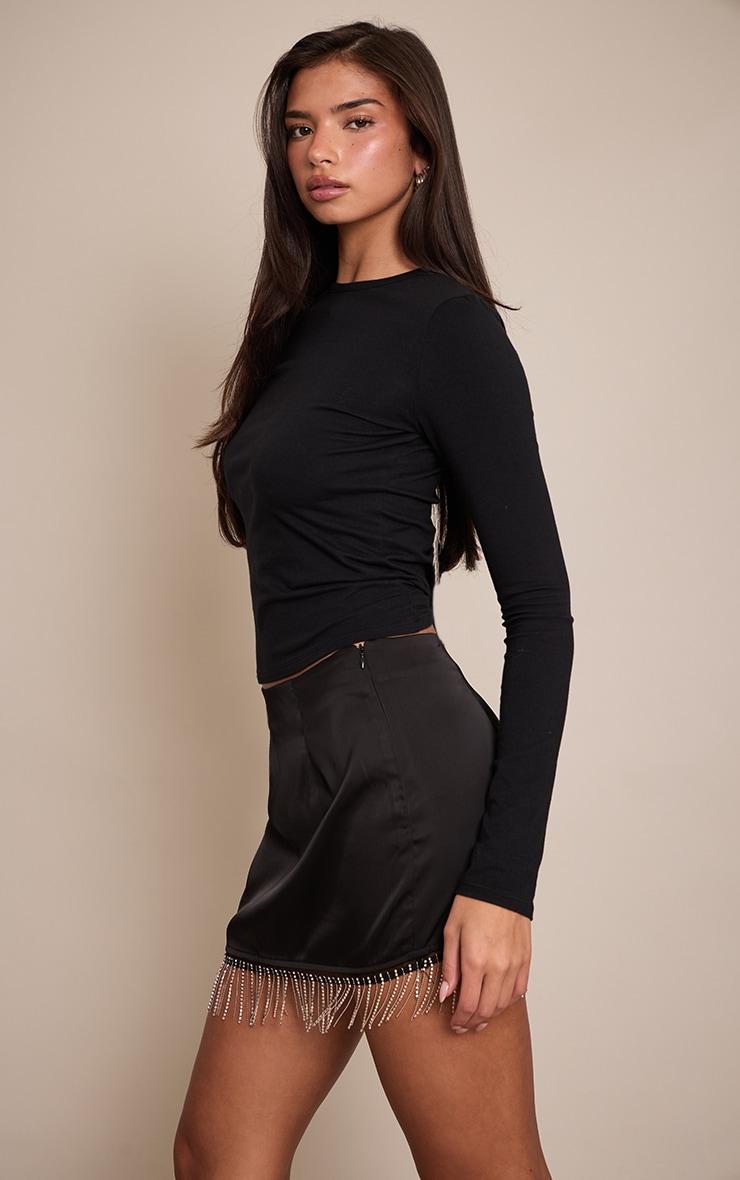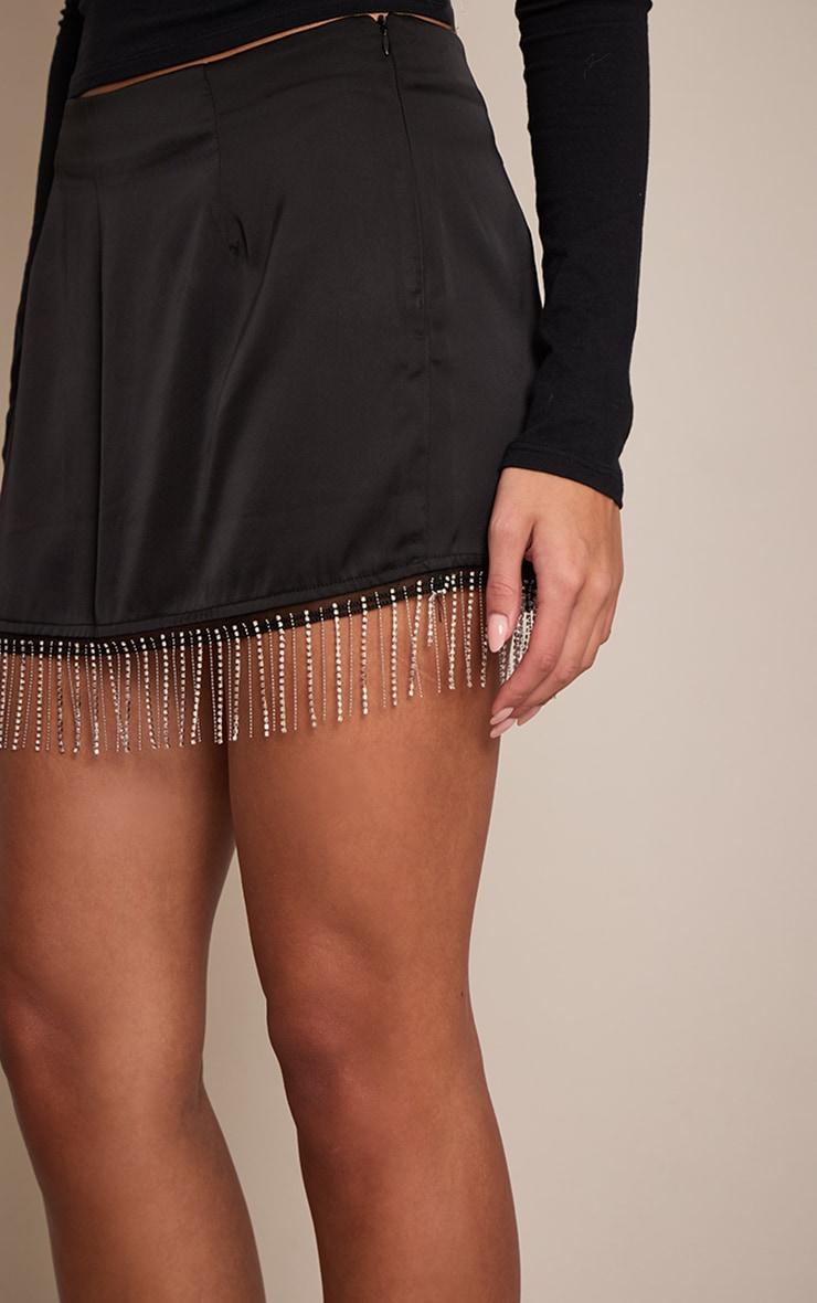 Unleash an artful edge into your eveningwear with the black satin diamante trim mini skirt. This sleek black design features a sophisticated mini cut, effortlessly elevated by a shimmering diamante fringe that catches the light with every movement. Its clean lines provide a polished foundation, ensuring an impactful presence from dusk till dawn. Team this standout piece with a minimalist long-sleeve top or a delicate cami, completing your confident look with striking high heels and an understated gold ring to achieve ultimate evening refinement.Length approx 33cm/13inch (Based on sample size US 4)Model wears size UK 8/ EU 36/ AUS 8/ US 4Model Height - 5ft 5inchp]:!mb-4inch>Brand: PrettyLittleThingCategory: BottomsProduct type: Mini SkirtColor: BlackMaterial: SatinOccasion: Evening
