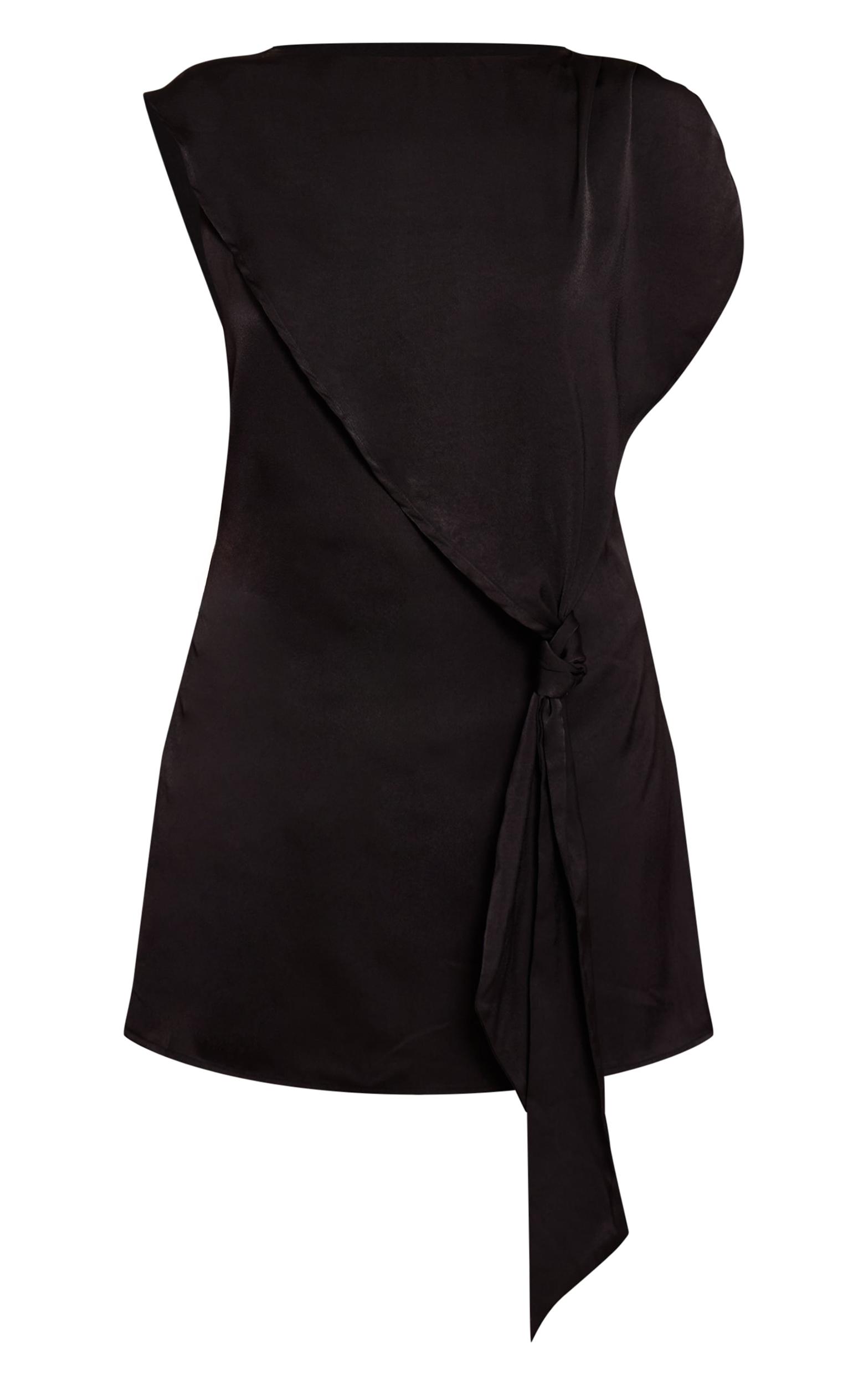 Artful simplicity defines your eveningwear with the black satin knot detail mini shift. This piece boasts a sophisticated round neckline and gently ruched cap sleeves, framing an effortlessly confident silhouette. The distinctive knot detail at the hip sculpts an artful drape, subtly enhancing your form and adding an unexpected twist to its mini cut. Perfect for a confident evening edit, style yours with sleek high heels and a chic black bag, ensuring your presence is felt from the moment you arrive.Length approx 81.5cm/32inch (Based on sample size US 4)Model wears size UK 8/ EU 36/ AUS 8/ US 4Model Height - 5ft 9inchp]:!mb-4inch>Brand: PrettyLittleThingCategory: DressesProduct type: Shift DressColor: BlackMaterial: SatinOccasion: Evening