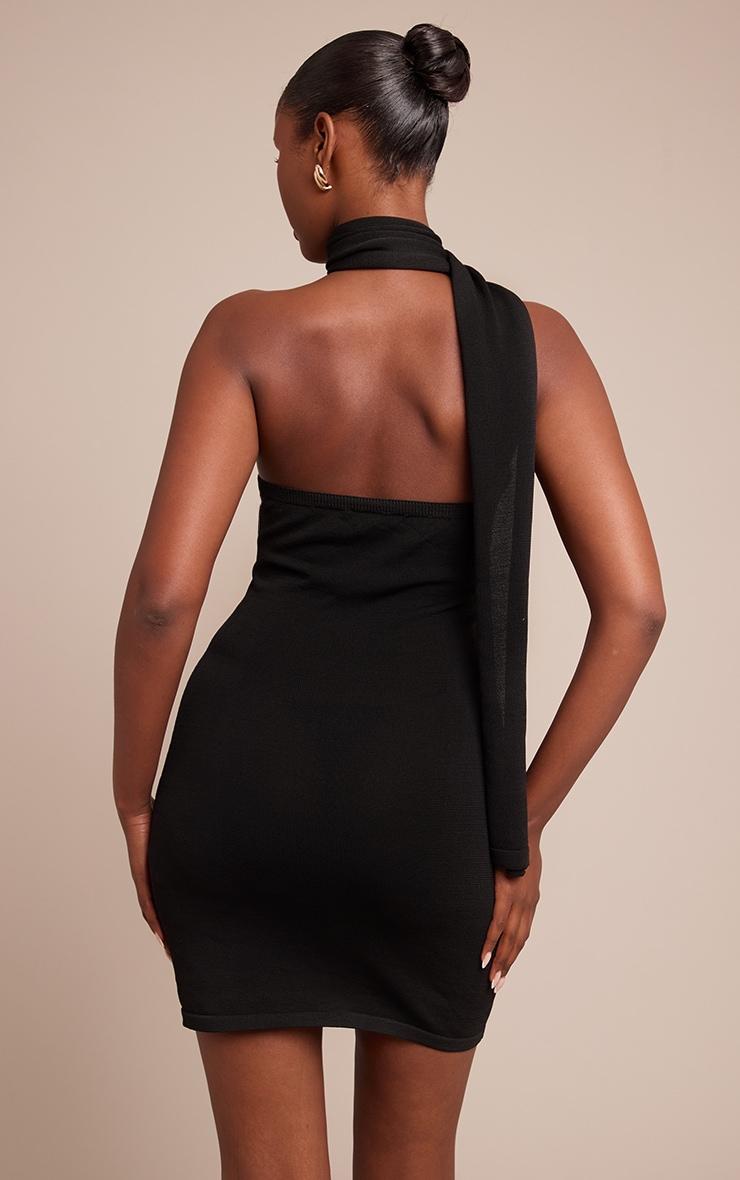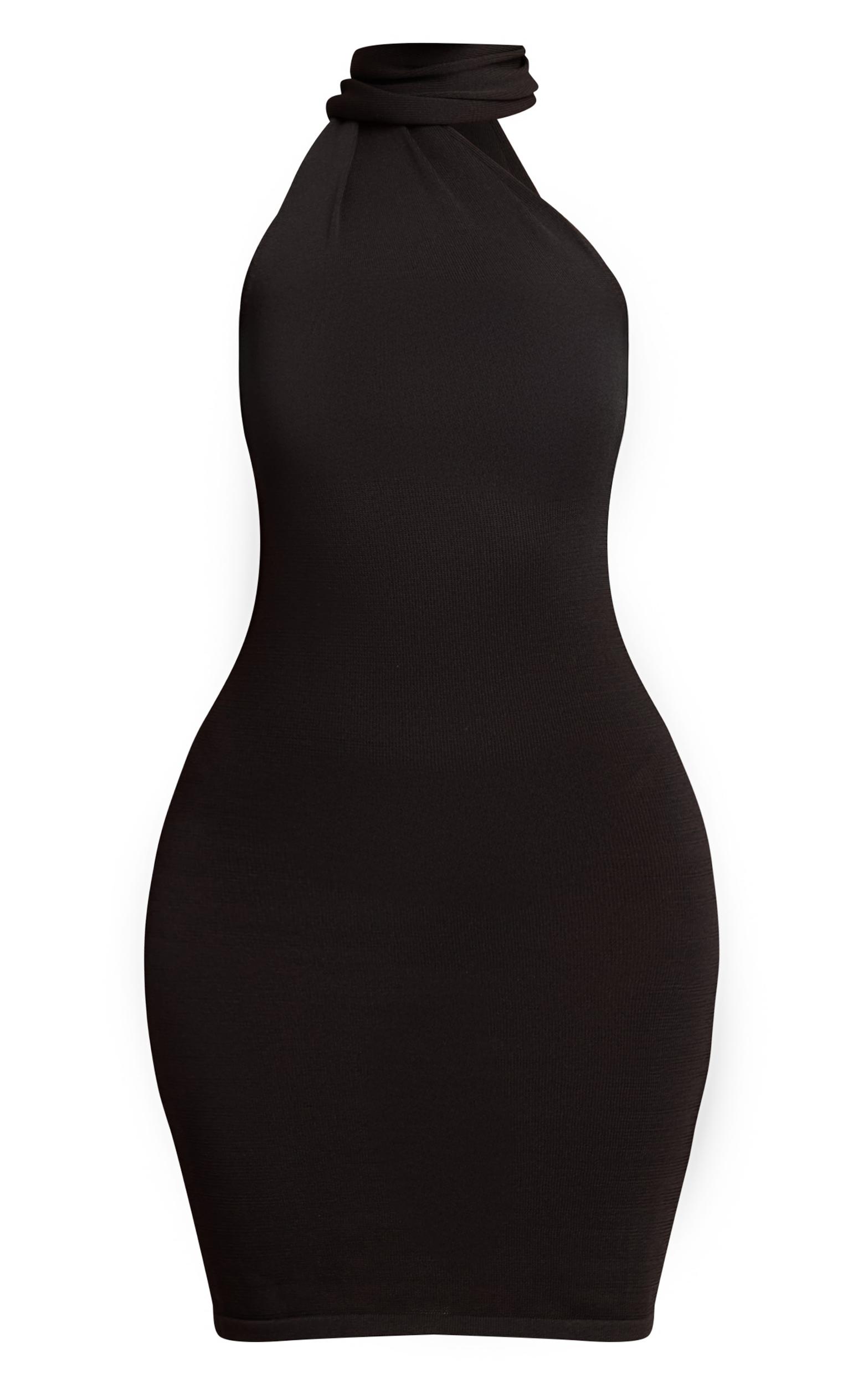 Unveiling the essential piece for elevated everyday style, the black scarf detail knitted mini dress offers a distinctive twist on classic daywear. This sleek mini dress carves a confident silhouette, defined by its unique halter neckline that elegantly flows into an integrated scarf detail, designed to drape artfully down the back. For a polished day look, pair this piece with sophisticated nude heels and add a touch of refinement with delicate gold earrings, ensuring a chic aesthetic that owns every room.Length approx 81.5cm/32inch (Based on sample size S)Model wears size SModel Height - 5ft 9inchp]:!mb-4inch>Category: KnitwearProduct type: Bodycon DressColor: BlackMaterial: KnitOccasion: Evening