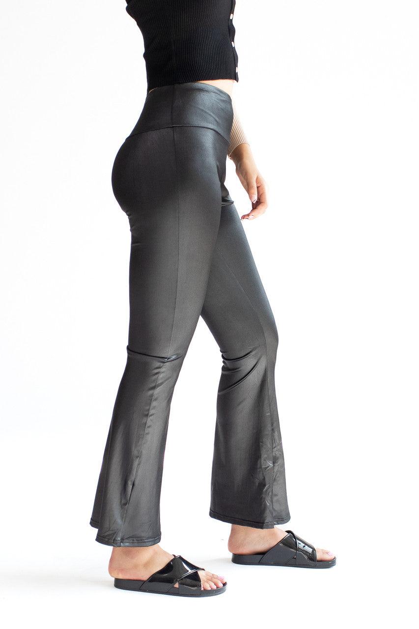 Black Shiny Bell Bottom Pants