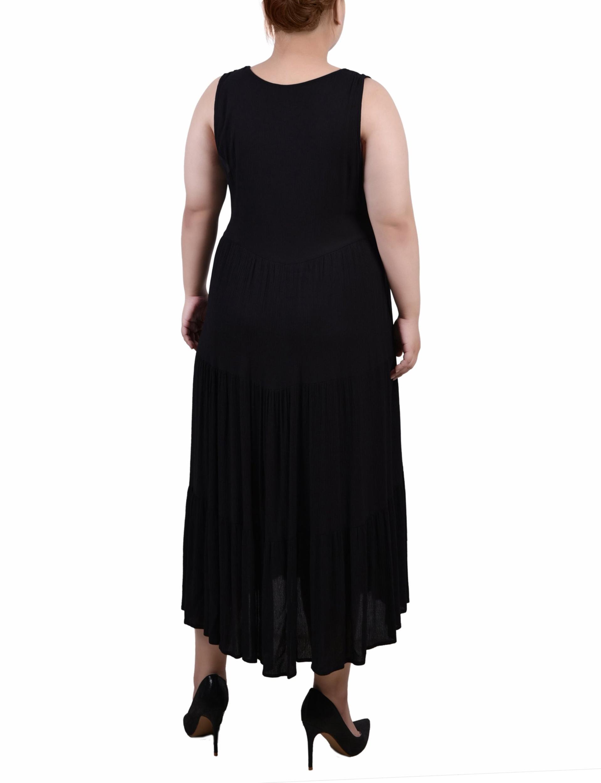 Black Sleeveless Surplice Tiered Dress - Plus Size