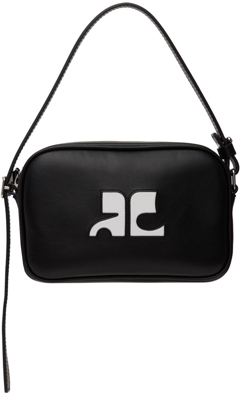 Buffed calfskin shoulder bag in black.