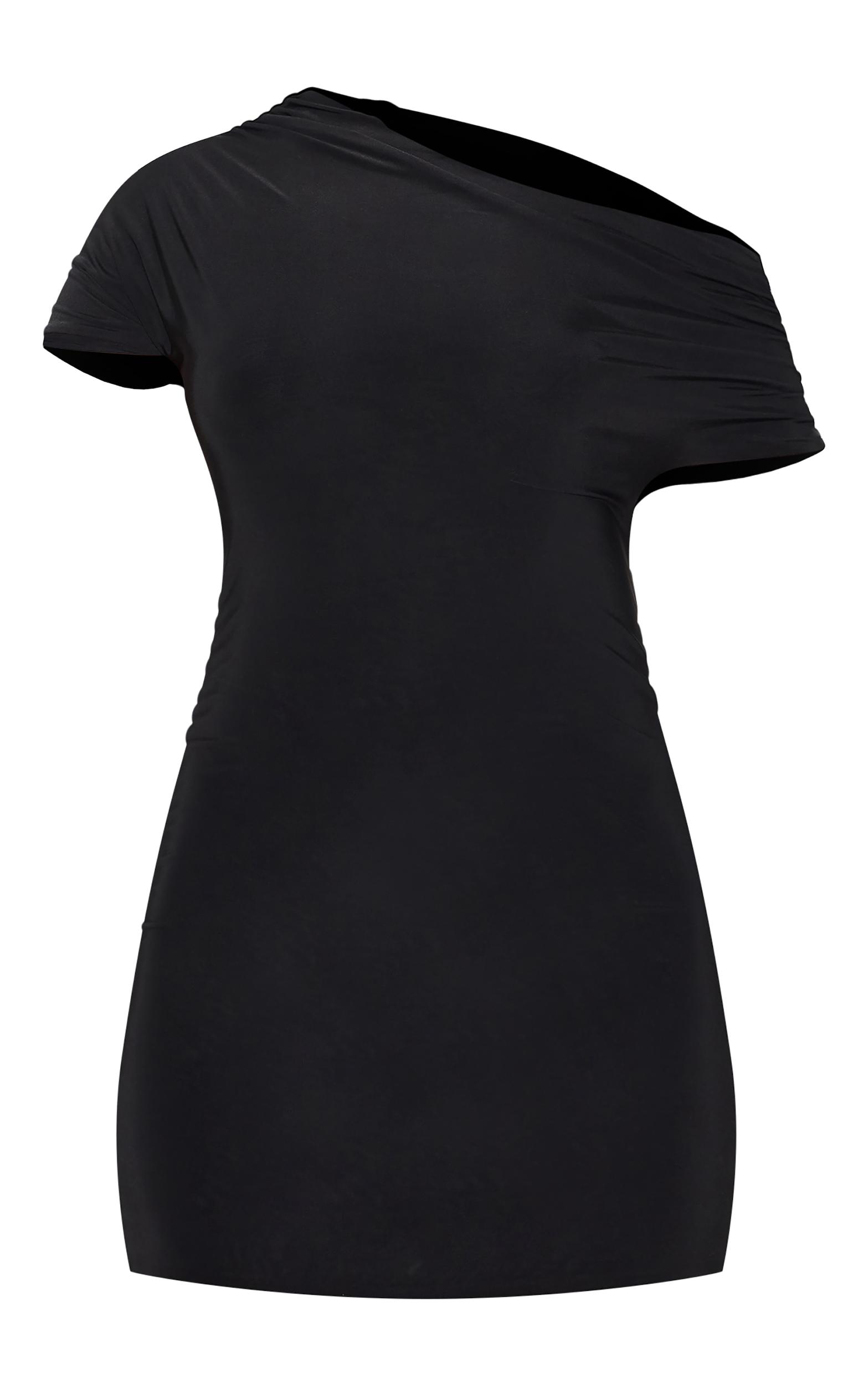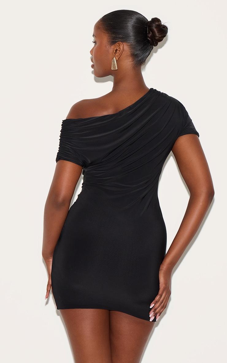 This black mini dress offers a masterclass in after-dark dressing. Crafted from a sleek, slinky jersey that drapes beautifully, the off-the-shoulder neckline and considered ruching elevate this piece beyond the ordinary. The mini length keeps it current and confident. Let the dress speak for itself by adding a sculptural clutch from our accessories collection for a night out. Length approx 81cm/32inch (Based on a sample size UK 8) Model wears size UK 8/ EU 36/ AUS 8/ US 4Model Height - 5ft 9inchp]:!mb-4inch>Brand: PrettyLittleThingCategory: DressesProduct type: Bodycon DressColor: BlackMaterial: Slinky JerseyDesign: PlainNeckline: AsymmetricSleeves: ShortOccasion: Evening