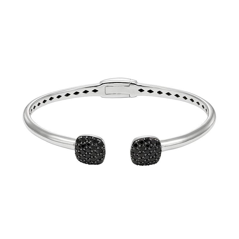 Adorned with round-cut genuine black spinel stones, this sterling silver hinged cuff bracelet gives you bold, beautiful style. Elevate your ensemble with this fashionable cuff bracelet.BRACELET DETAILS Length: 6.5 in. Clasp: hinge Metal: rhodium-plated sterling silver STONE DETAILS Stone type: genuine black spinel Shape: round Setting: prong Size: 6.5". Gender: female. Age Group: adult.