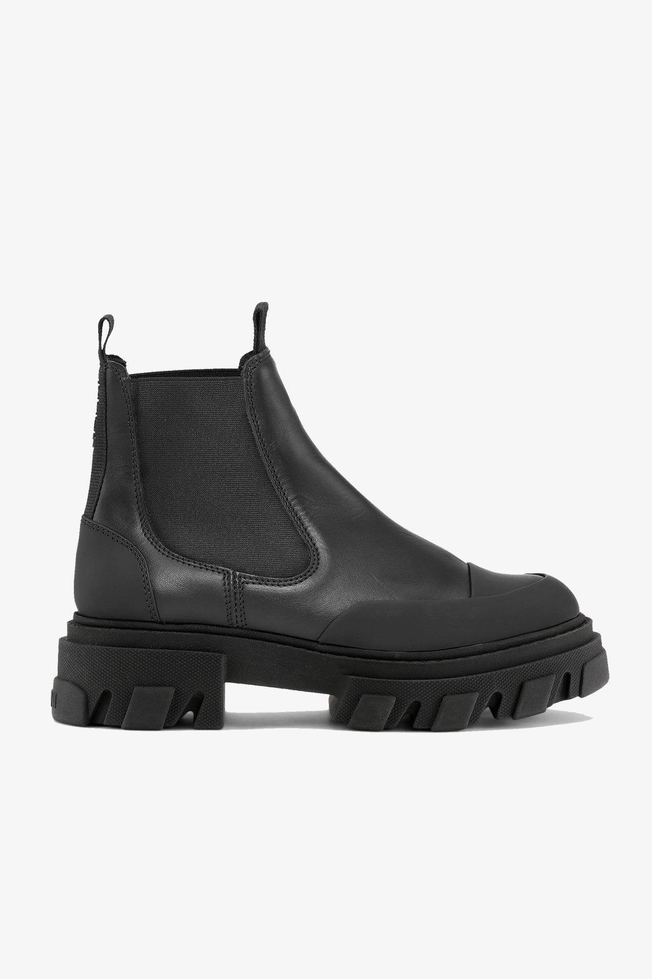 Black Stitch Cleated Low Chelsea Boots
