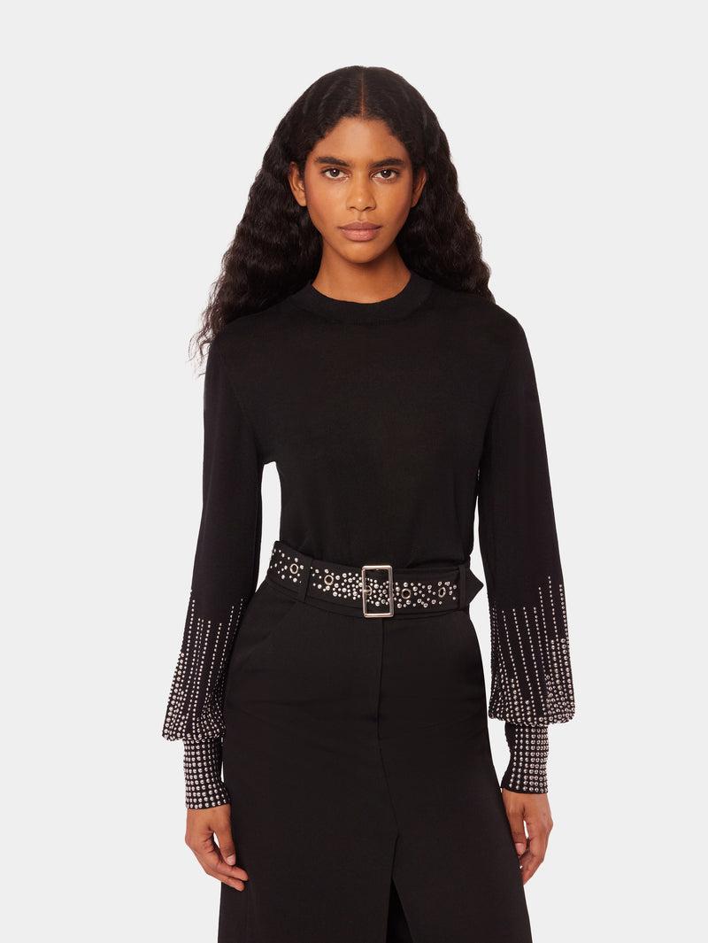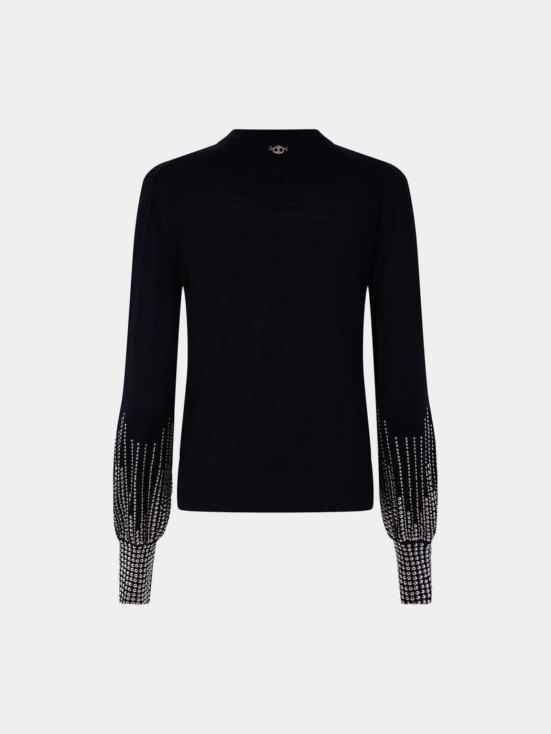 Black stud-cuffs wool jumper