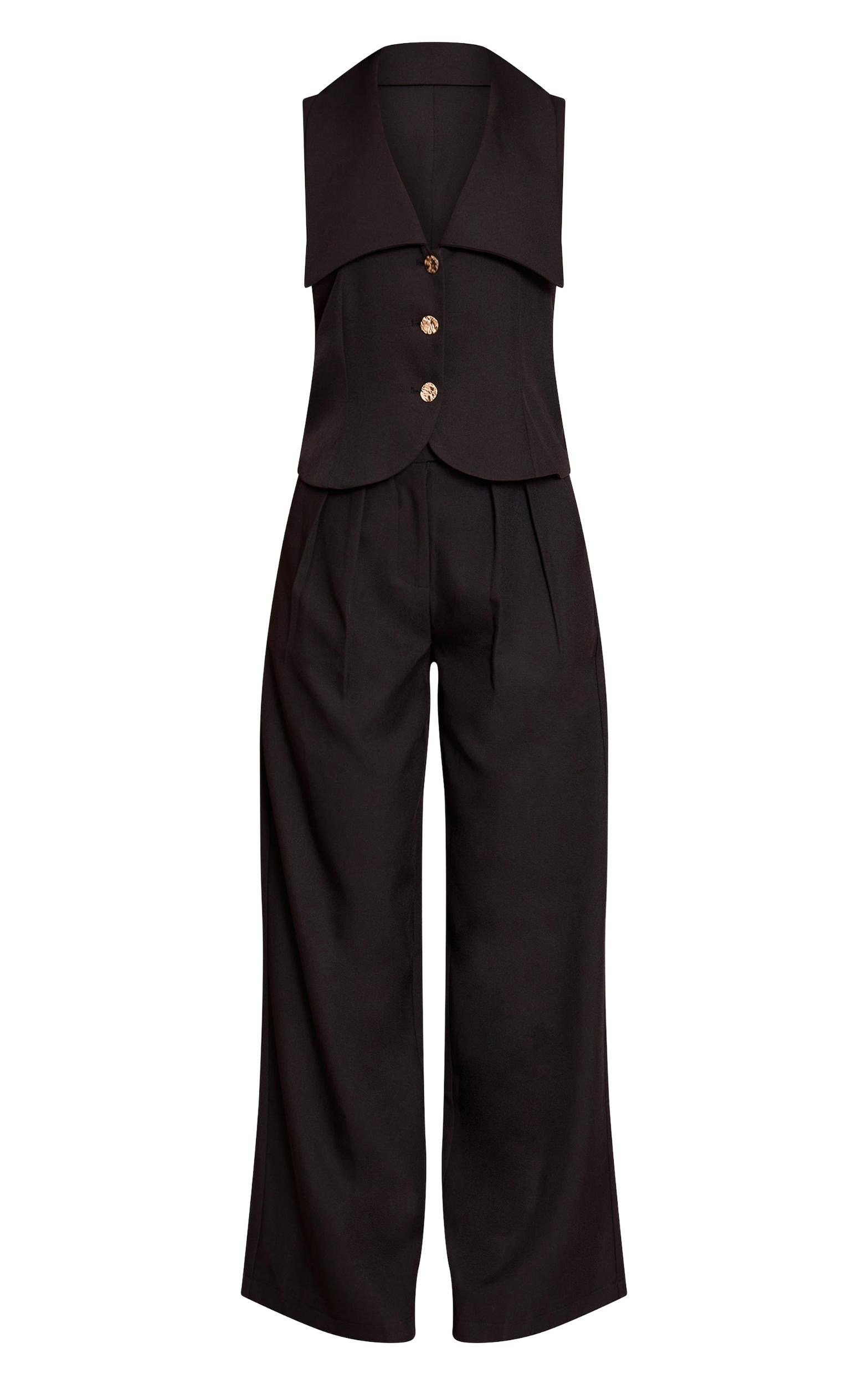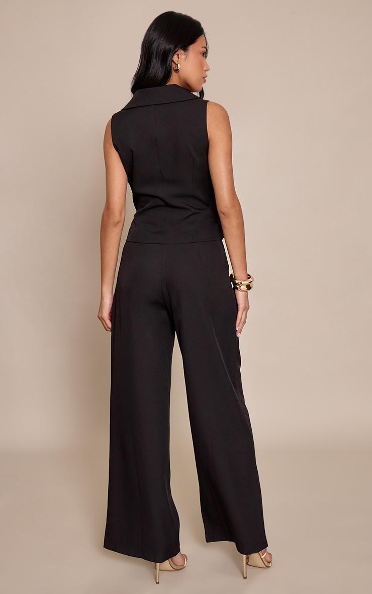 Make an impactful entrance with the black tailored woven button down waist coat jumpsuit. Its black woven finish features a sharp tailored bodice, v-neck, gold buttons, and a flattering wide leg. This piece is perfect for sophisticated evening plans or chic dinner dates. Style with sharp court heels and a subtle gold ring for an undeniably polished aesthetic.Length approx 155cm/61inch (Based on sample size US 4)Model wears size UK 8/ EU 36/ AUS 8/ US 4Model Height - 5ft 6inchp]:!mb-4inch>Brand: PrettyLittleThingCategory: DressesProduct type: Wide Leg JumpsuitColor: BlackMaterial: Tailored WovenOccasion: Evening