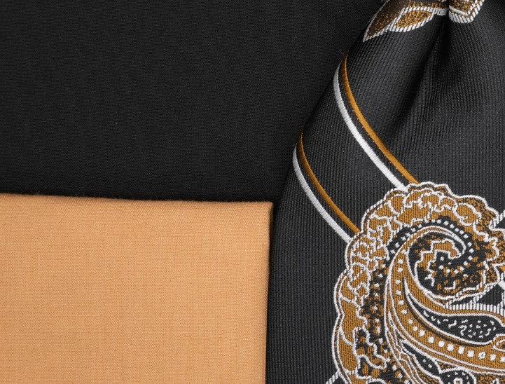 French Cuff Printed Tone on Tone Shirt in Black/Gold with Tie, Cuff Links and Pocket Square