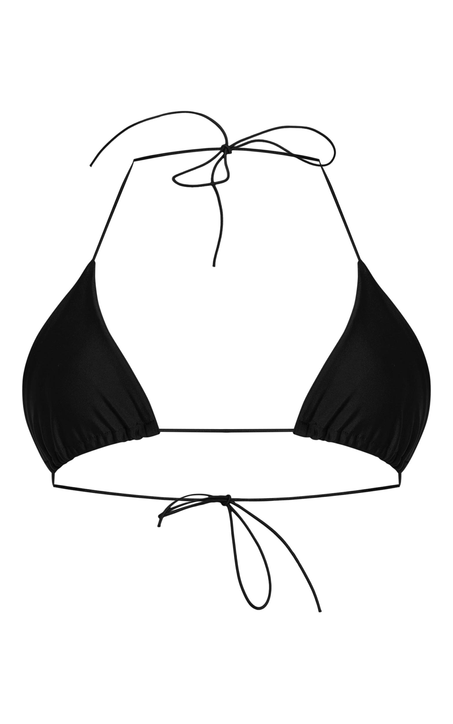 A masterclass in minimalist swimwear. This black triangle bikini top offers a clean, considered silhouette, making it a timeless addition to your resort edit. The design features self-tie straps, allowing for a customisable fit and subtle styling detail. Crafted in a smooth, stretch fabric for comfort and ease of movement, it's the perfect foundation for sun-drenched days. Pair it with high-waisted pants from our collection for an elevated take on poolside dressing. Length approx 29cm/11.5inch (Based on a sample size UK 8) Model wears size UK 8/ EU 36/ AUS 8/ US 4Model Height - 5ft 7inchp]:!mb-4inch>Brand: PrettyLittleThingCategory: SwimwearProduct type: Triangle Bikini TopColor: BlackMaterial: SwimDesign: PrintNeckline: CowlSleeves: SleevelessOccasion: Day