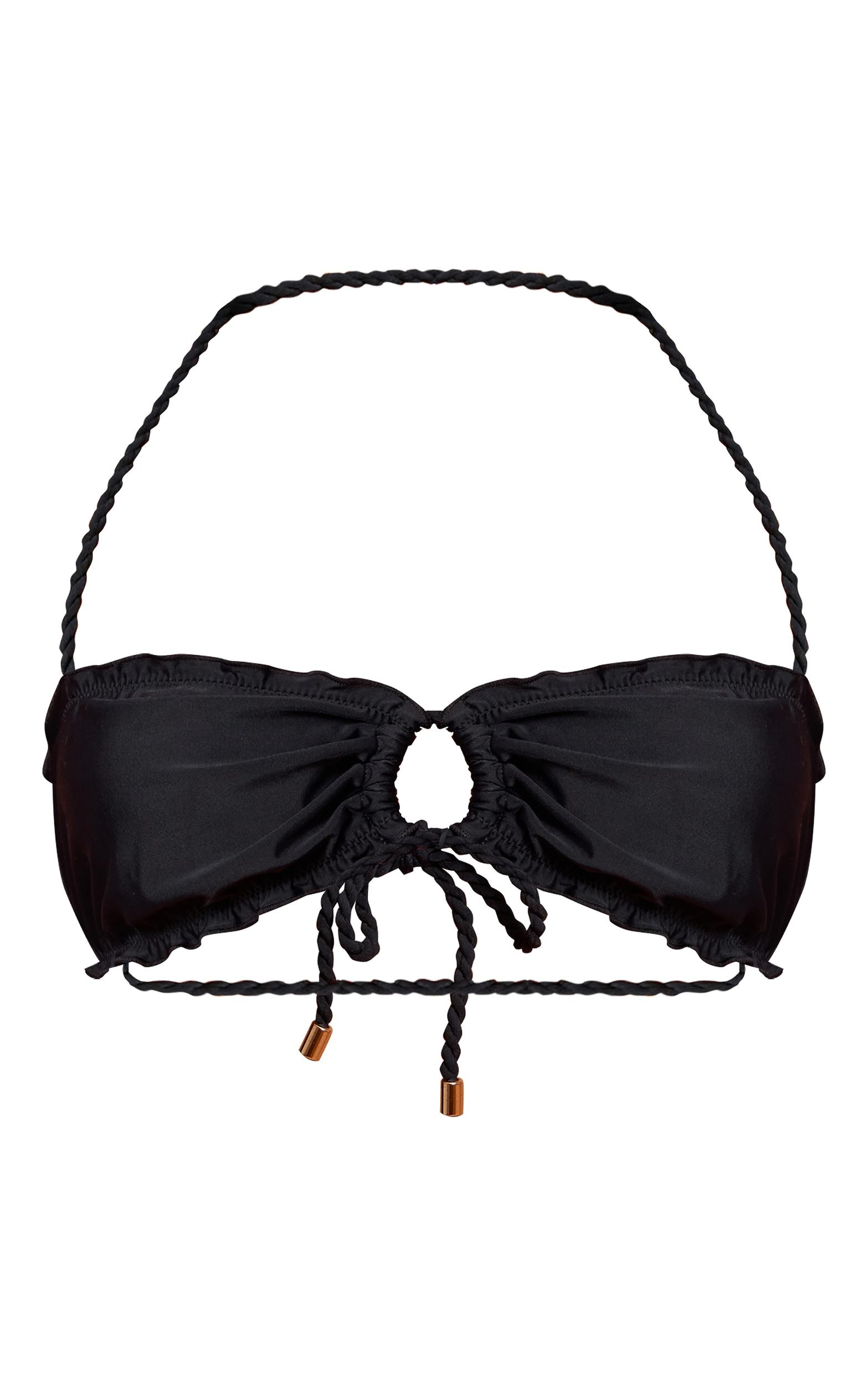 Turn up the heat in the black twist detail ruched bikini top. Made from a black swim fabric, this top features flattering ruching and a twist detail. Style with the matching bikini bottoms, gold accessories and slip-on heels for a luxe finish.Length approx 29cm/11.5inch (Based on sample size US 4)Model wears size UK 8/ EU 36/ AUS 8/ US 4Model Height - 5ft 7inchp]:!mb-4inch>Brand: PrettyLittleThingCategory: SwimwearProduct type: Bandeau Bikini TopColor: BlackMaterial: SwimOccasion: Day