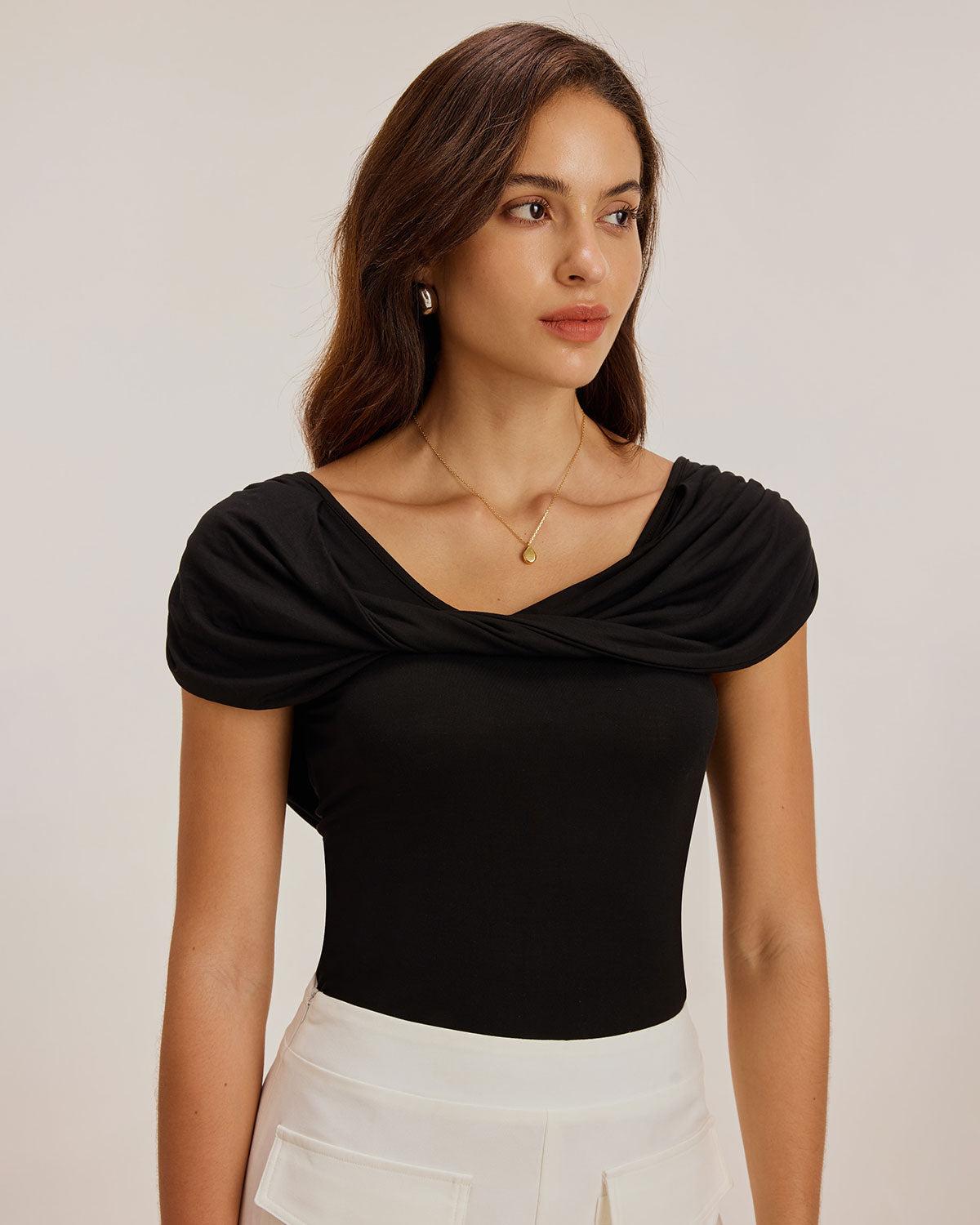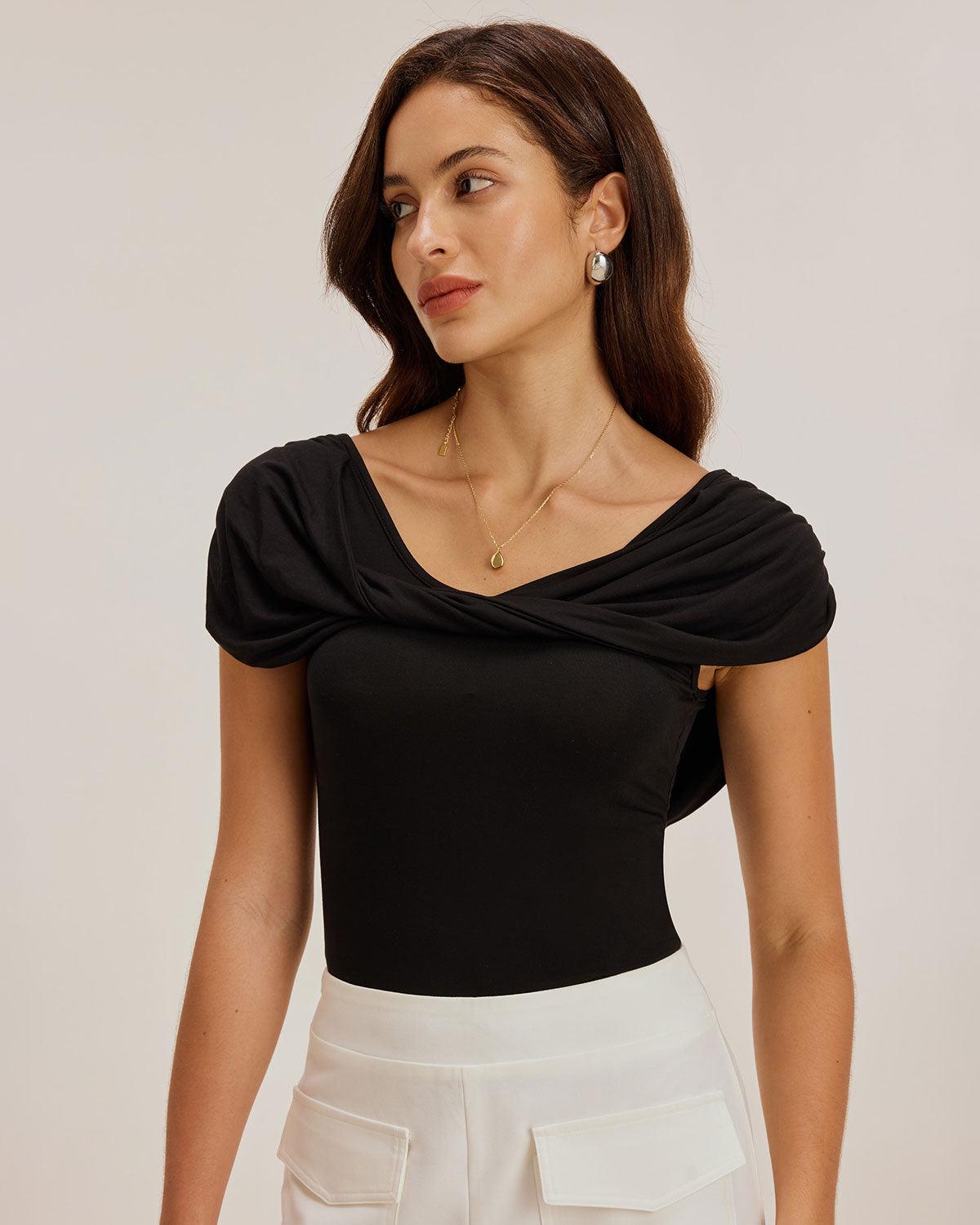- Occasion: Office wear - Fabric Stretch: Medium Stretch - Sleeve Length: Sleeveless - Sleeve Type: Sleeveless - Pattern Type: Solid - Embellishment: Ruched, Twist - Neckline: U Neck - Fit: Slim - Fabric: Viscose 95.0%, Spandex 5.0% - Material: Knit