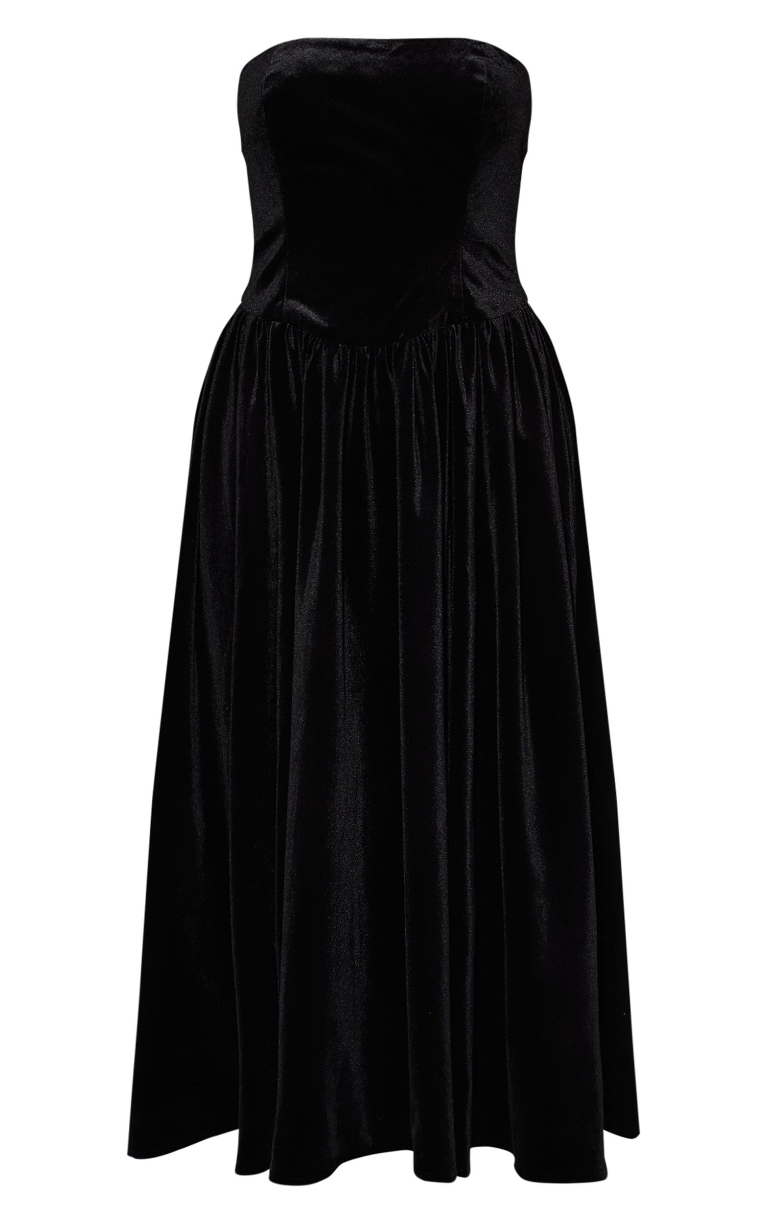 Channel refined confidence with this essential for after-dark moments. The black velvet bandeau maxi dress defines your silhouette with a sleek bandeau neckline and a meticulously fitted bodice, falling to a generously full maxi skirt from a cinched waist. For an unexpected yet undeniably fashion-forward aesthetic, style this statement piece with sharp mid calf boots and delicate gold stud earrings. It's an artful blend of classic elegance and contemporary edge, designed for the professional who knows exactly how to make an impact.Length approx 145cm/57inch (Based on sample size US 4)Model wears size UK 8/ EU 36/ AUS 8/ US 4Model Height - 5ft 6inchp]:!mb-4inch>Brand: PrettyLittleThingCategory: DressesProduct type: Shift DressColor: BlackMaterial: VelvetOccasion: Occasion