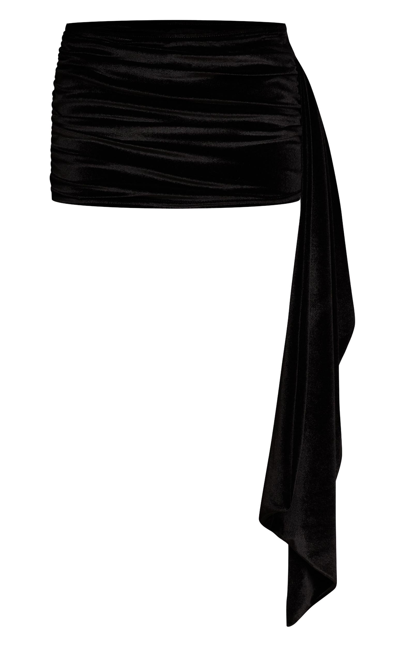 Master evening allure with the black velvet drape detail mini skirt. Presented in sophisticated black velvet, it boasts a mini length and a striking drape detail. Perfect for making an unforgettable entrance at your next exclusive event. Style with a sleek satin camisole, sharp black mules, and delicate gold cuff bracelets for an elevated look that commands attention.Length approx 33cm/13inch (Based on sample size US 4)Model wears size UK 8/ EU 36/ AUS 8/ US 4Model Height - 5ft 8inchp]:!mb-4inch>Brand: PrettyLittleThingCategory: BottomsProduct type: Mini SkirtColor: BlackMaterial: VelvetDesign: PlainOccasion: Evening