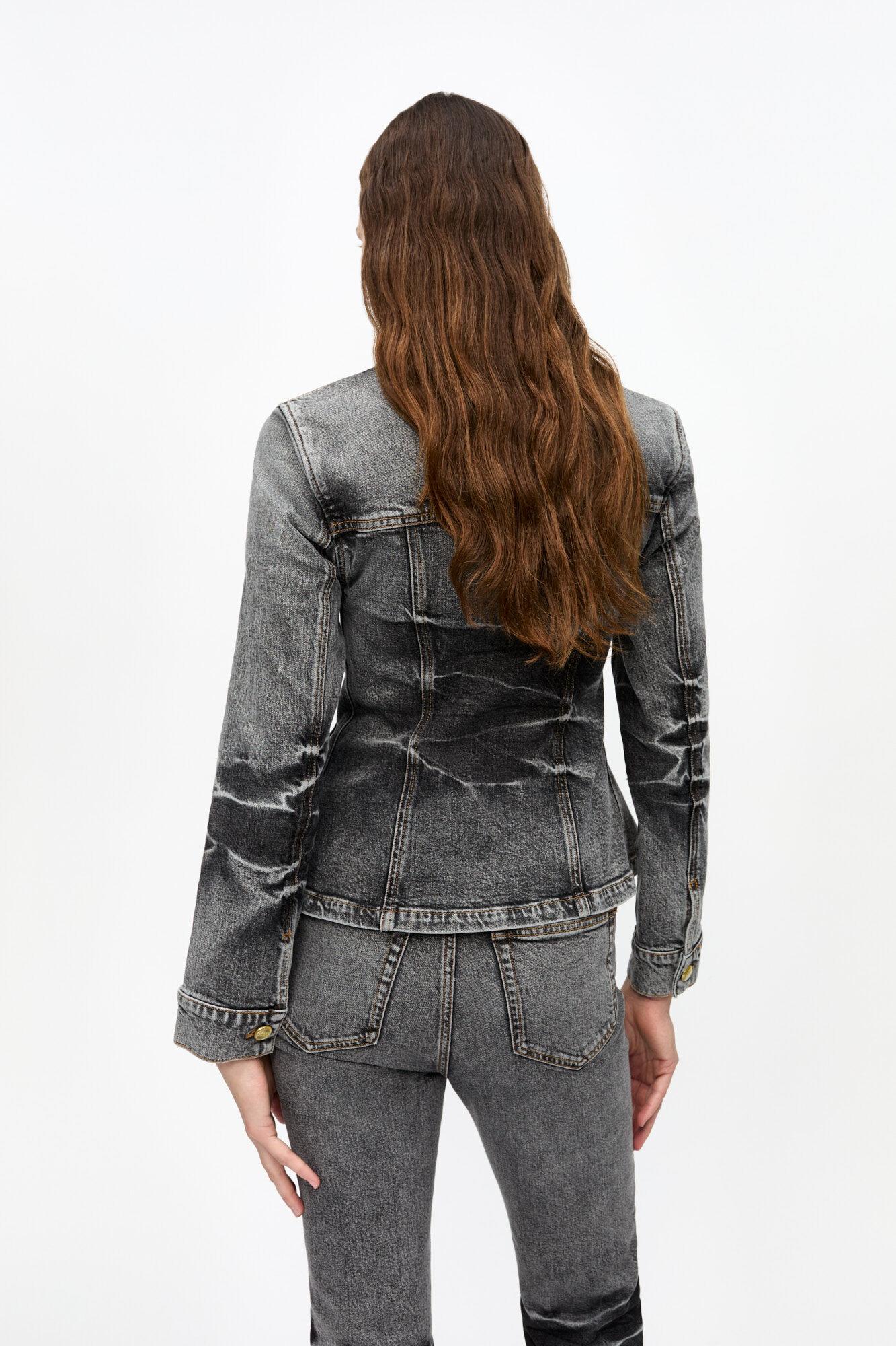 Crafted from an organic cotton blend, the Black Washed Future Denim Blazer brings a new touch to the classic denim jacket with its corset-inspired shape and heavy whiskers. Made with a hint of stretch, this denim blazer features a collar, a full button closure, patch pockets, and a GANNI label on the back.