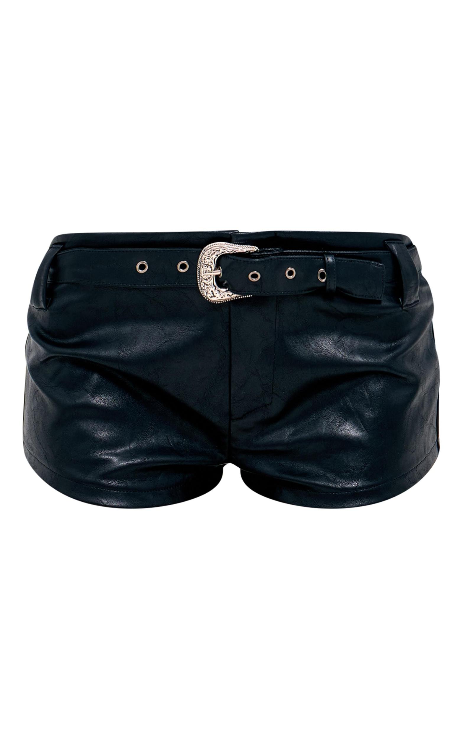 Add an edge to your weekend look with these black washed faux leather western belt hot pants. Brought to you in a black washed faux leather material with a belted design and a flattering fit, how can you resist? Style these faux leather hot pants with a lace top, heels and gold accessories for a look they won't be able to take their eyes off. Length approx 33cm/13inch (Based on a sample size UK 8) Model wears size UK 8/ EU 36/ AUS 8/ US 4Model Height - 5ft 6inchp]:!mb-0inch>Category: BottomsProduct type: Hot PantColour: BlackMaterial: Faux LeatherDesign: PlainOccasion: Evening