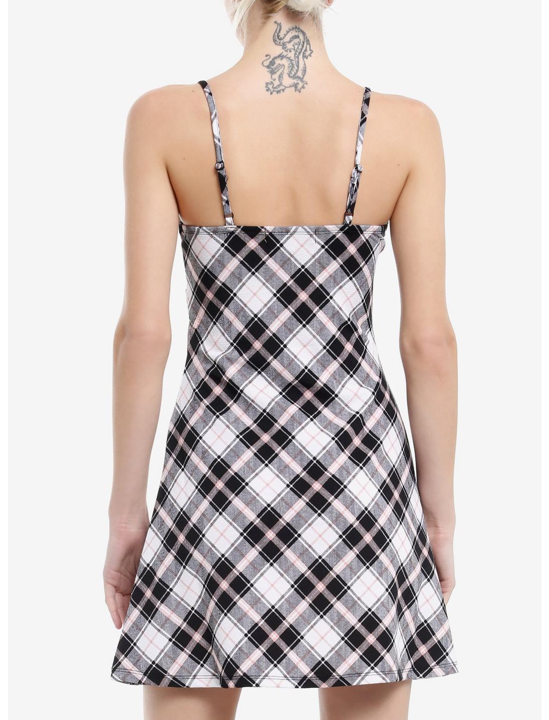 Black White & Pastel Pink Plaid Mini Dress