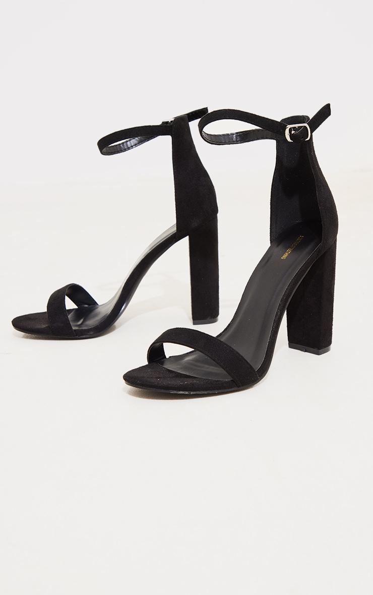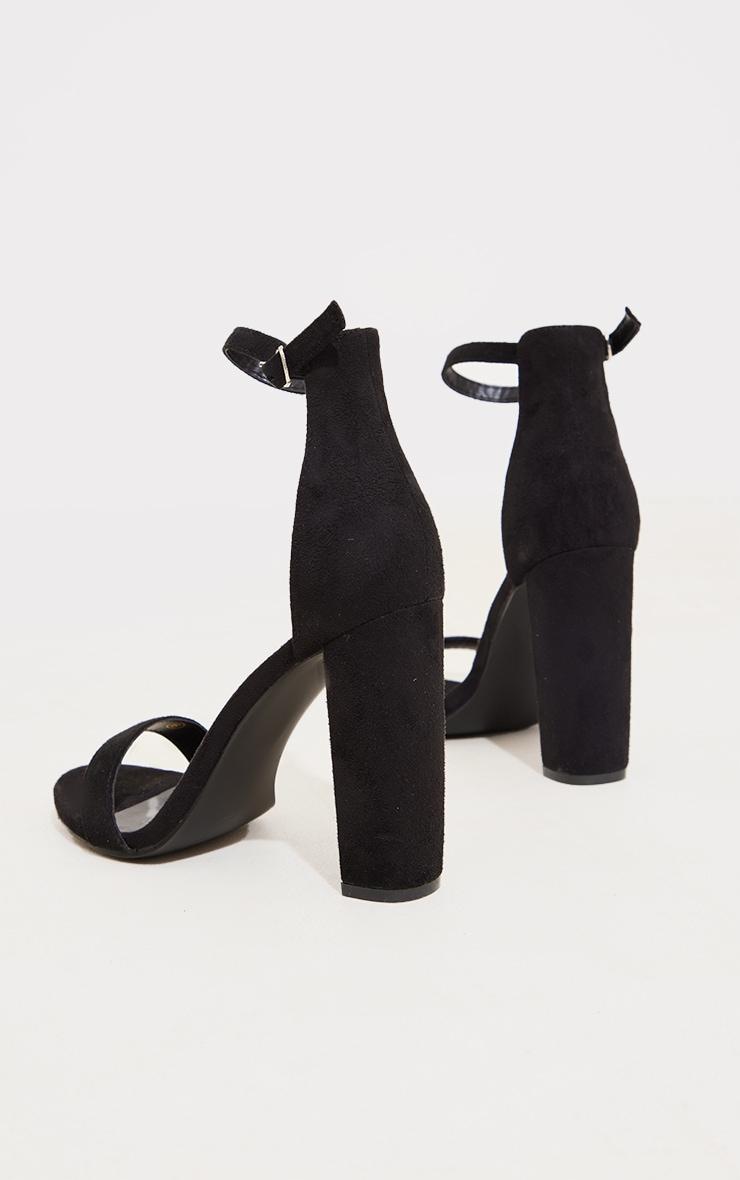 Make your weekend outfit look effortlessly chic with these black wide fit block heeled sandals. Brought to you in a black hue material with a wide fit design and block heels, what more could you want? Style these heeled sandals with your fave wardorbe pieces to instantly elevate any look. Faux Suede Buckle fastening 4inch Heelp]:!mb-0inch>Category: FootwearProduct type: Wide Fit HeelsColor: BlackOccasion: Day