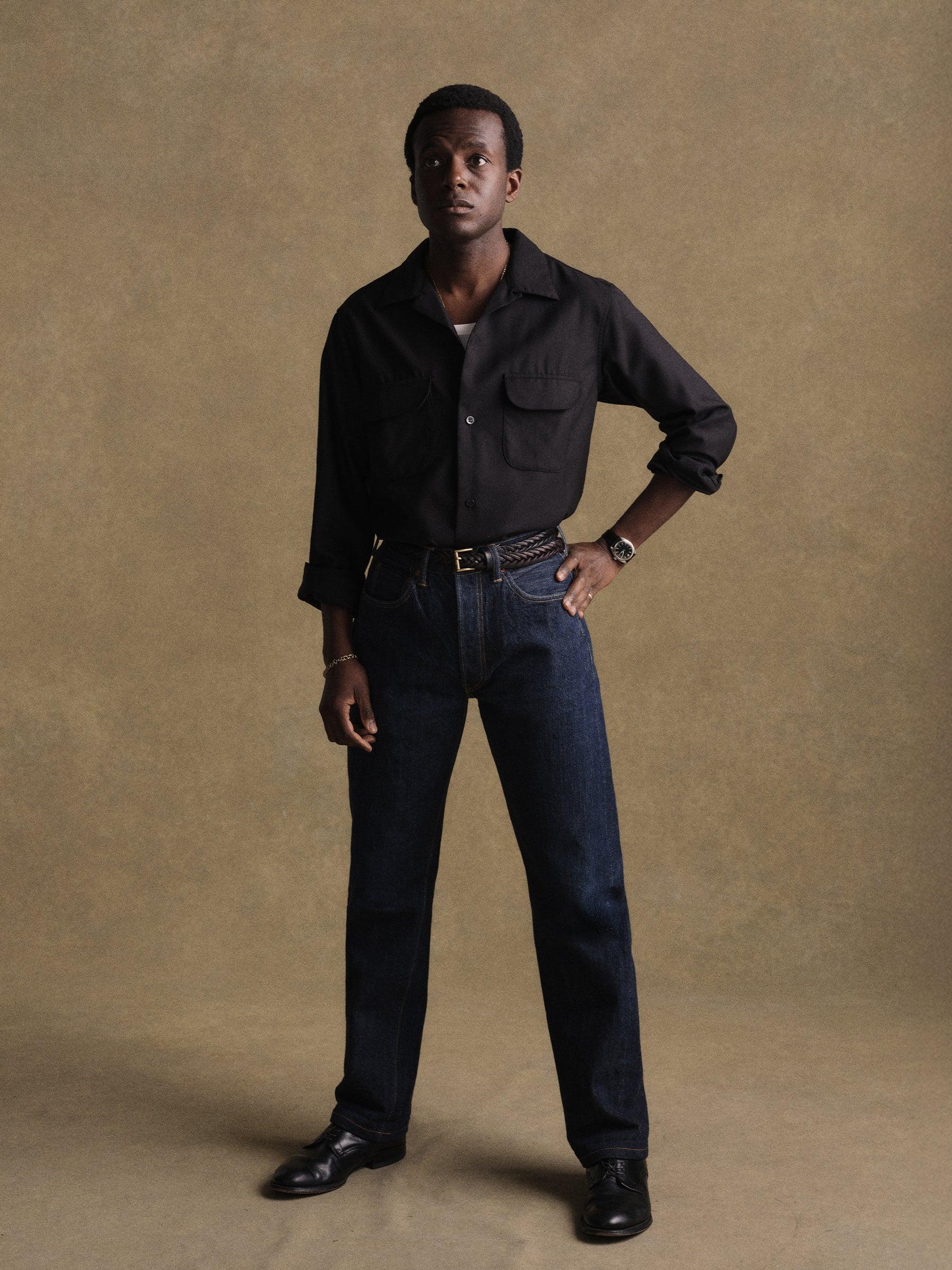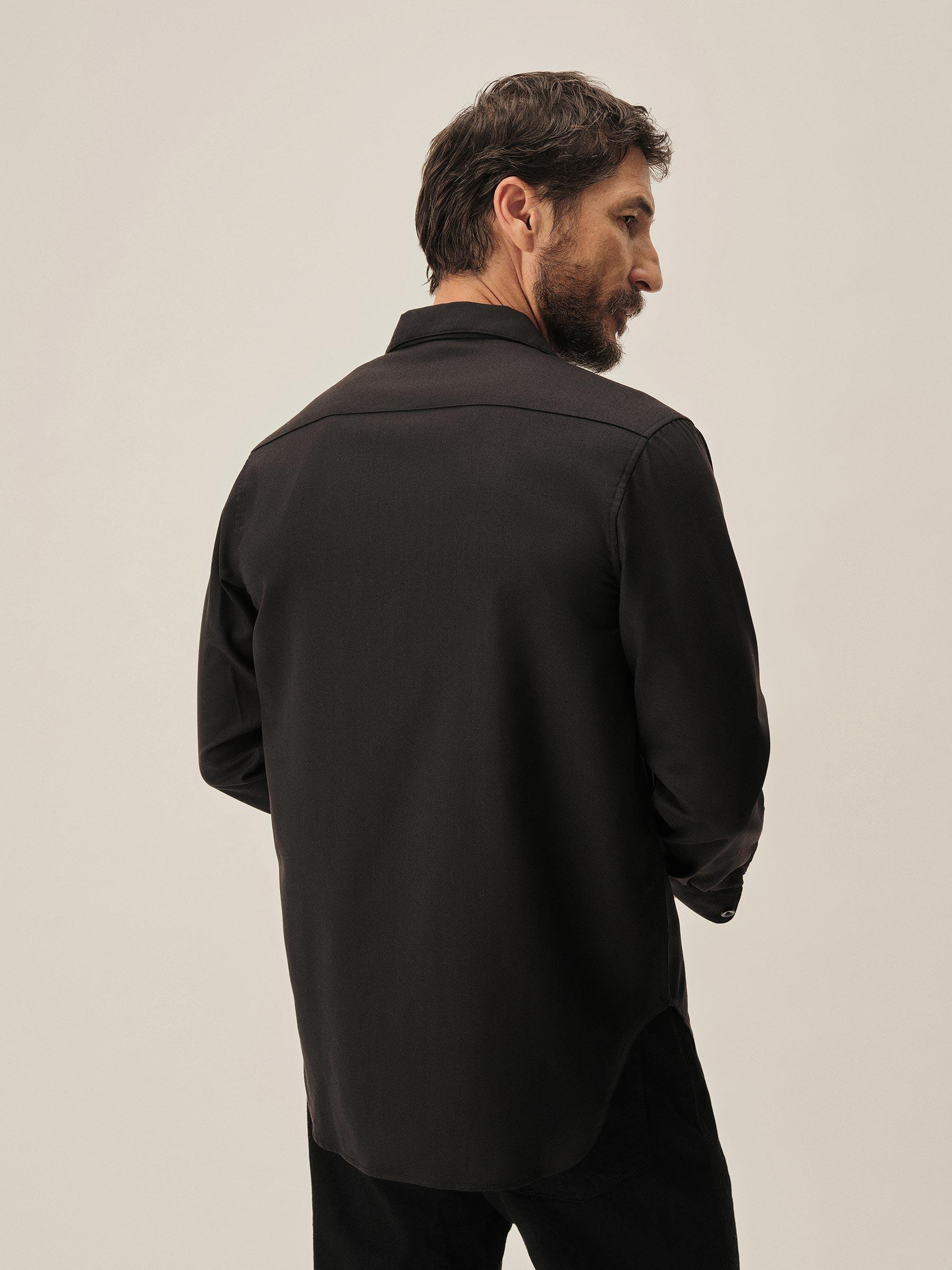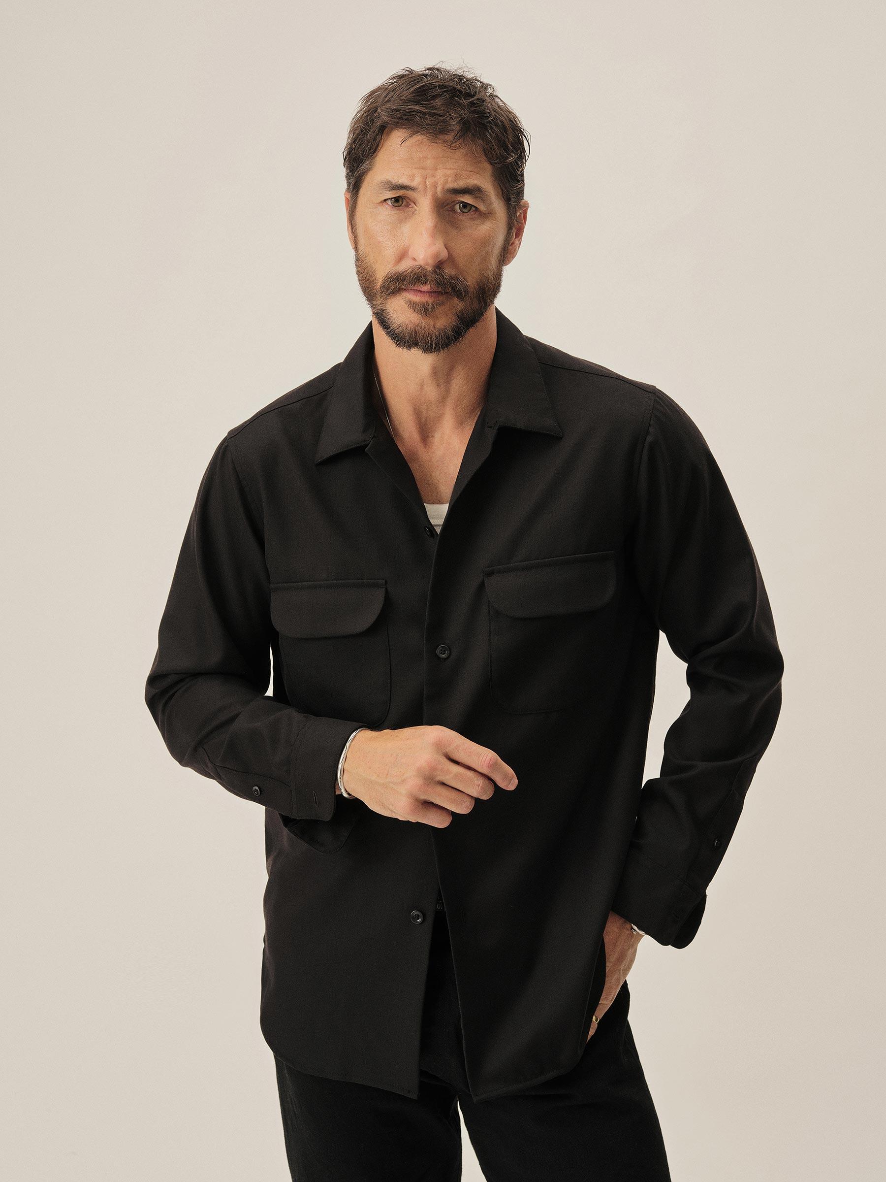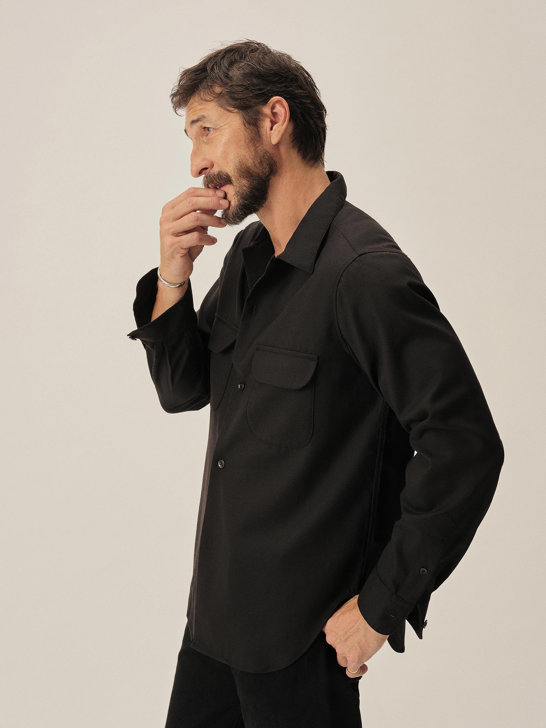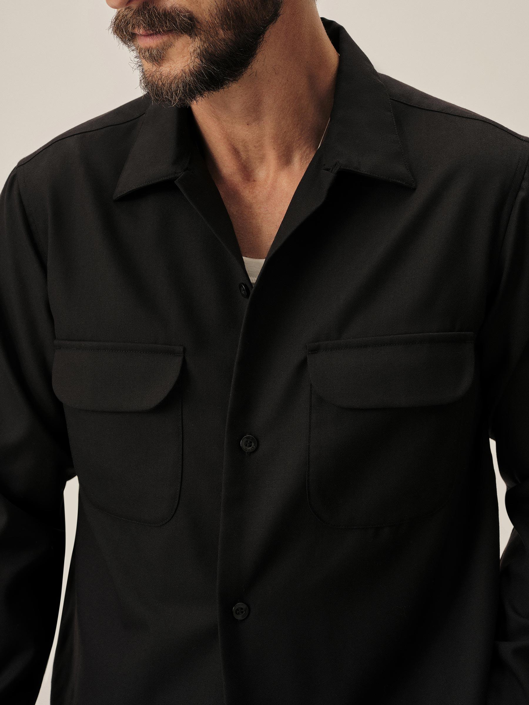 Black Wool Gabardine Diamondhead Camp Shirt