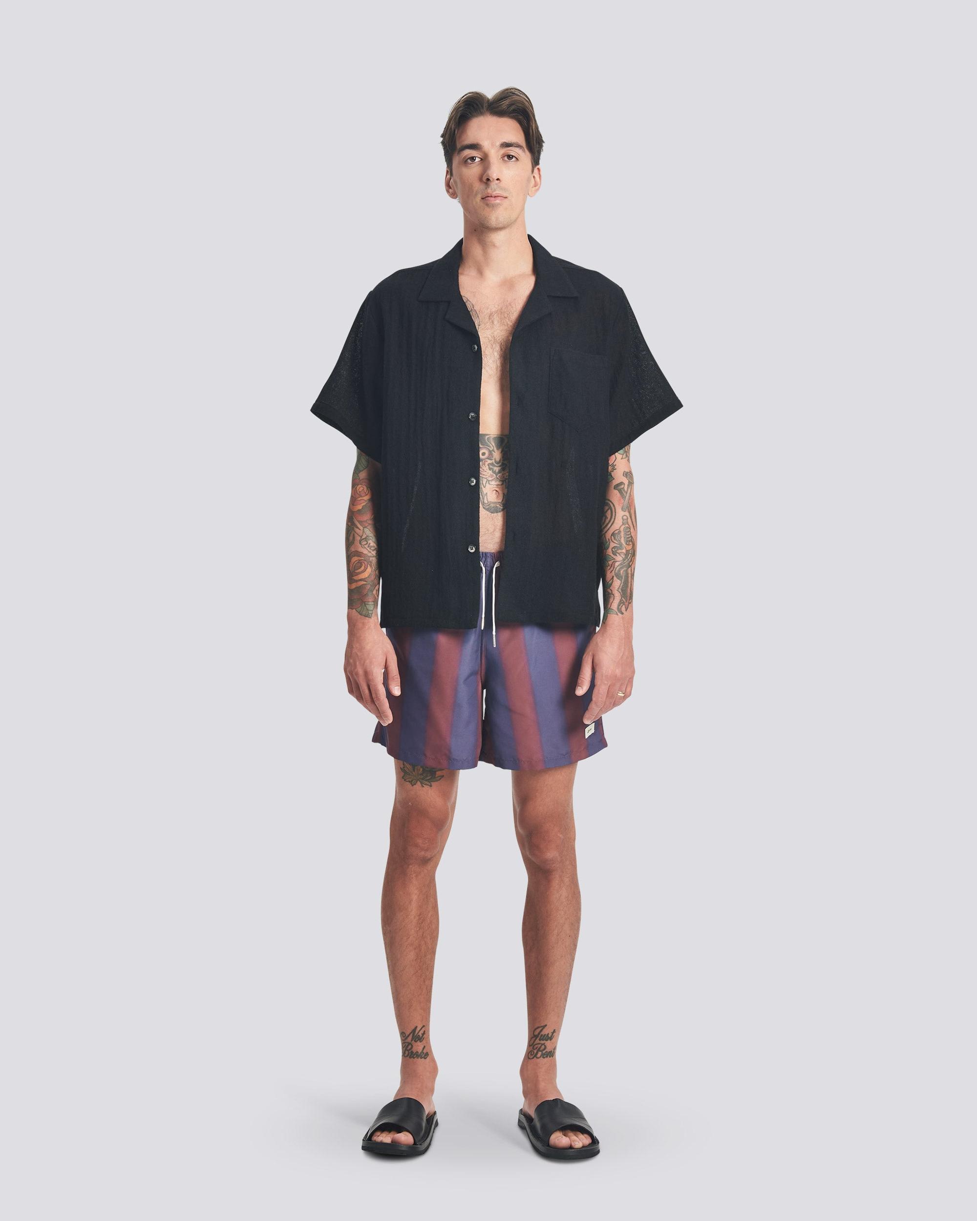 Black Wool Gauze Camp Shirt