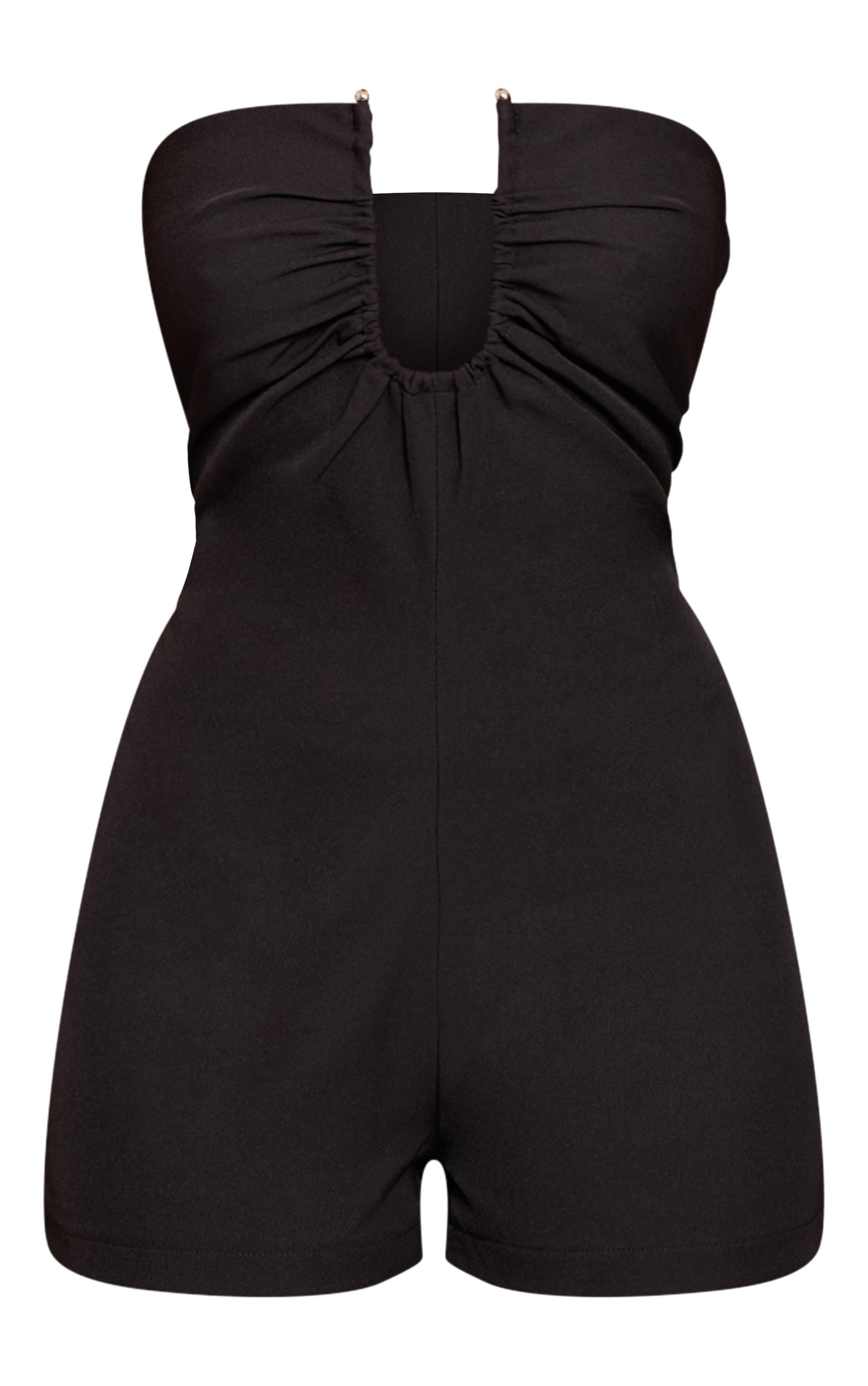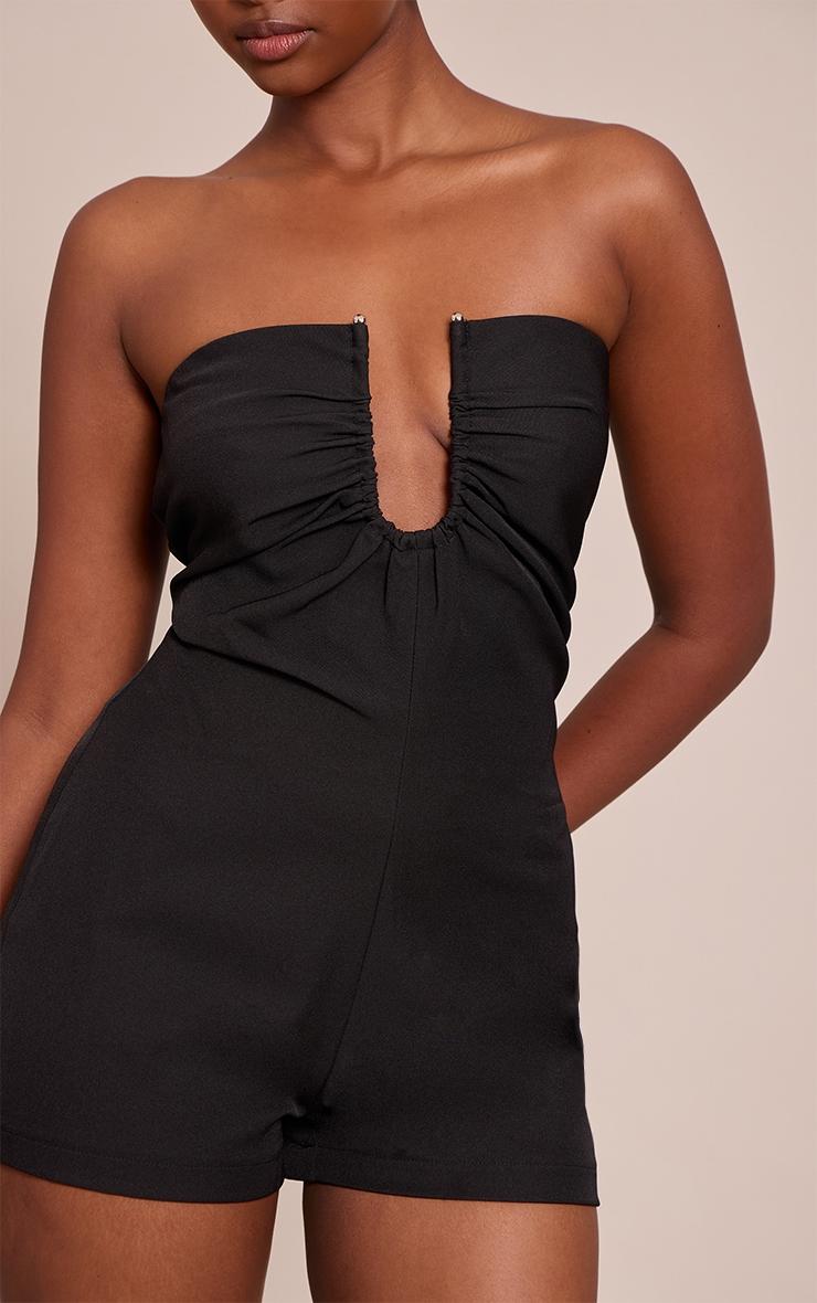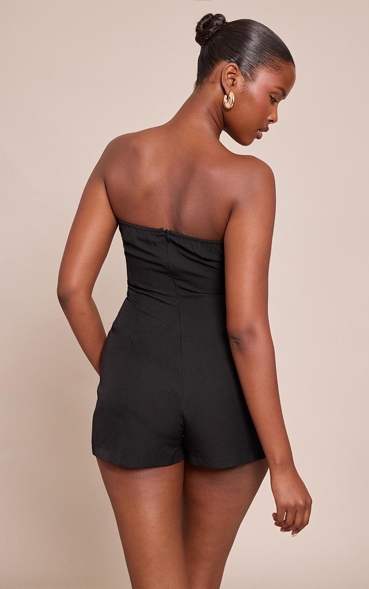 Own the evening in a silhouette designed for definitive impact. The black woven bandeau tailored romper presents a confident aesthetic with its sharp bandeau neckline, featuring a distinctive ruched U-plunge detail that adds an artful edge. Its tailored shorts create a sleek, structured profile, perfect for an elevated after-dark look. Complete this confident statement with some refined black heels and a subtle gold ring for an ensemble that speaks volumes.Length approx 58.5cm/23inch (Based on sample size US 4)Model wears size UK 8/ EU 36/ AUS 8/ US 4Model Height - 5ft 9inchp]:!mb-4inch>Brand: PrettyLittleThingCategory: DressesProduct type: Tailored PlaysuitColor: BlackMaterial: Tailored WovenOccasion: Evening