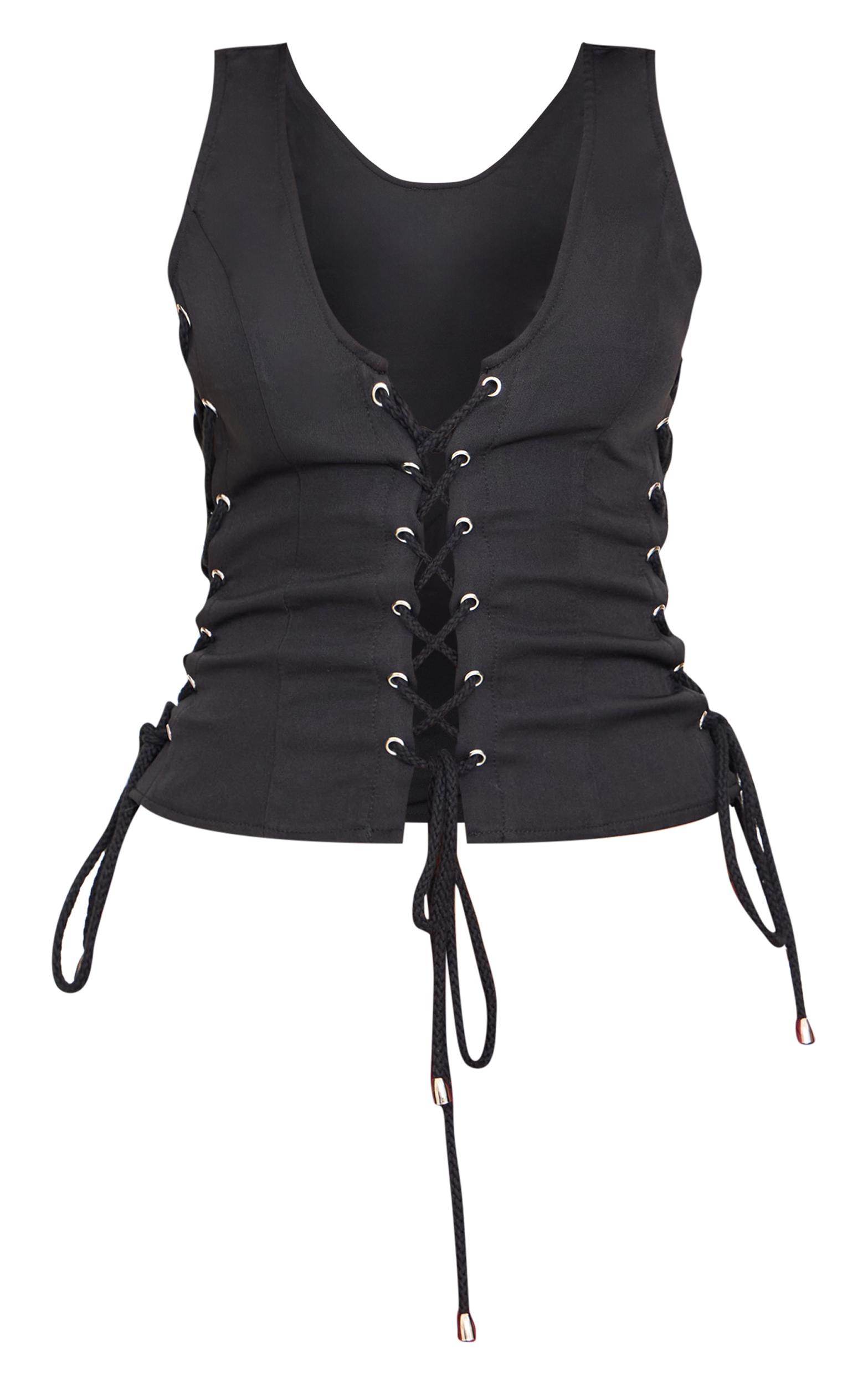 Take your look the extra mile with this top doll. Featuring a black woven material with lace-up detailing and a plunging design, we are obsessed. Team with matching bottoms and strappy heels for an insta-worthy combo. Length approx 51cm/20 (Based on a sample size UK 8) Model wears size UK 8/ EU 36/ AUS 8/ US 4 Model Height - 5ft 5