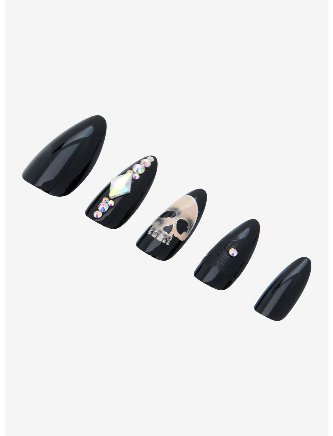 Blackheart Black Skull Rhinestone Press-On Nail Set