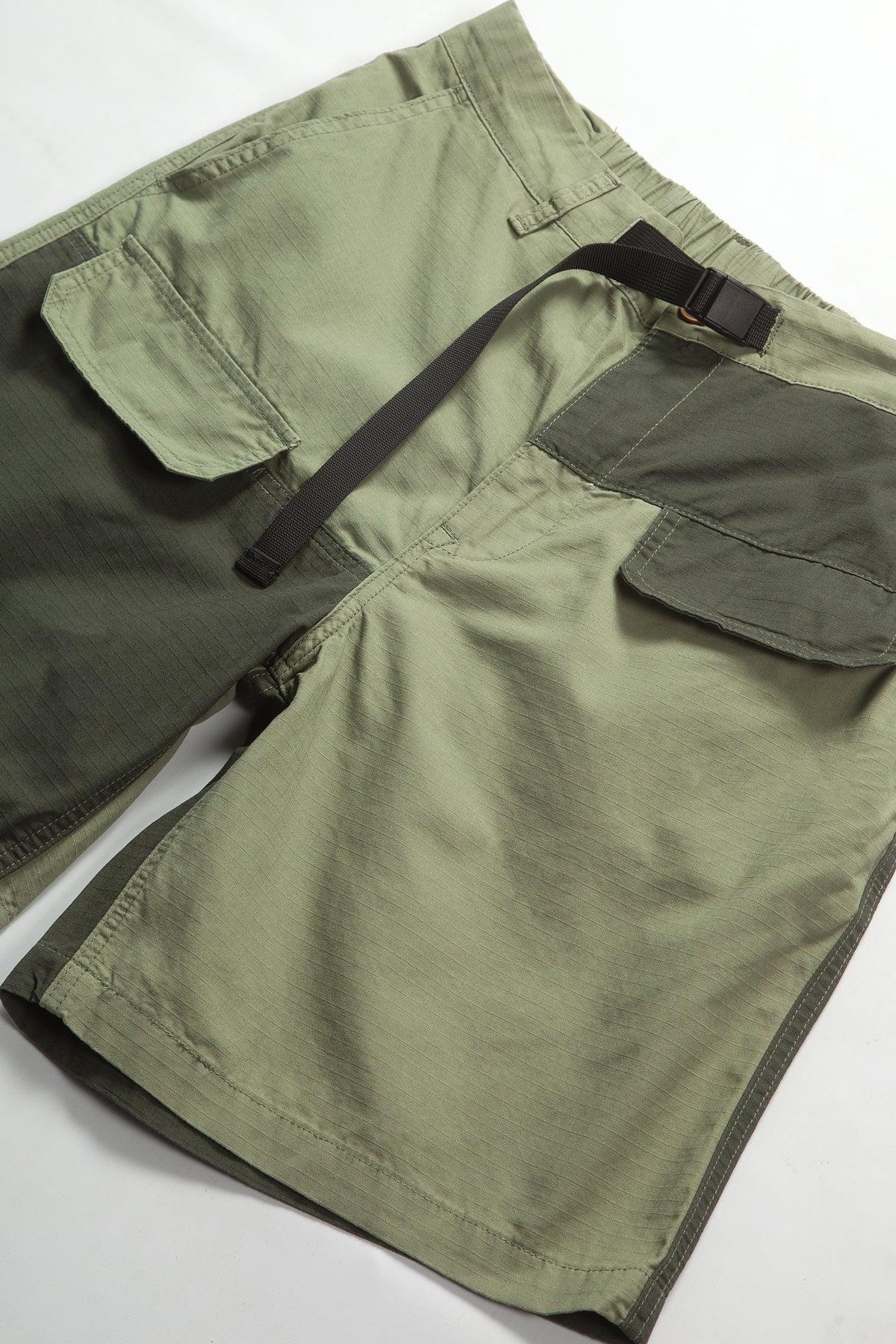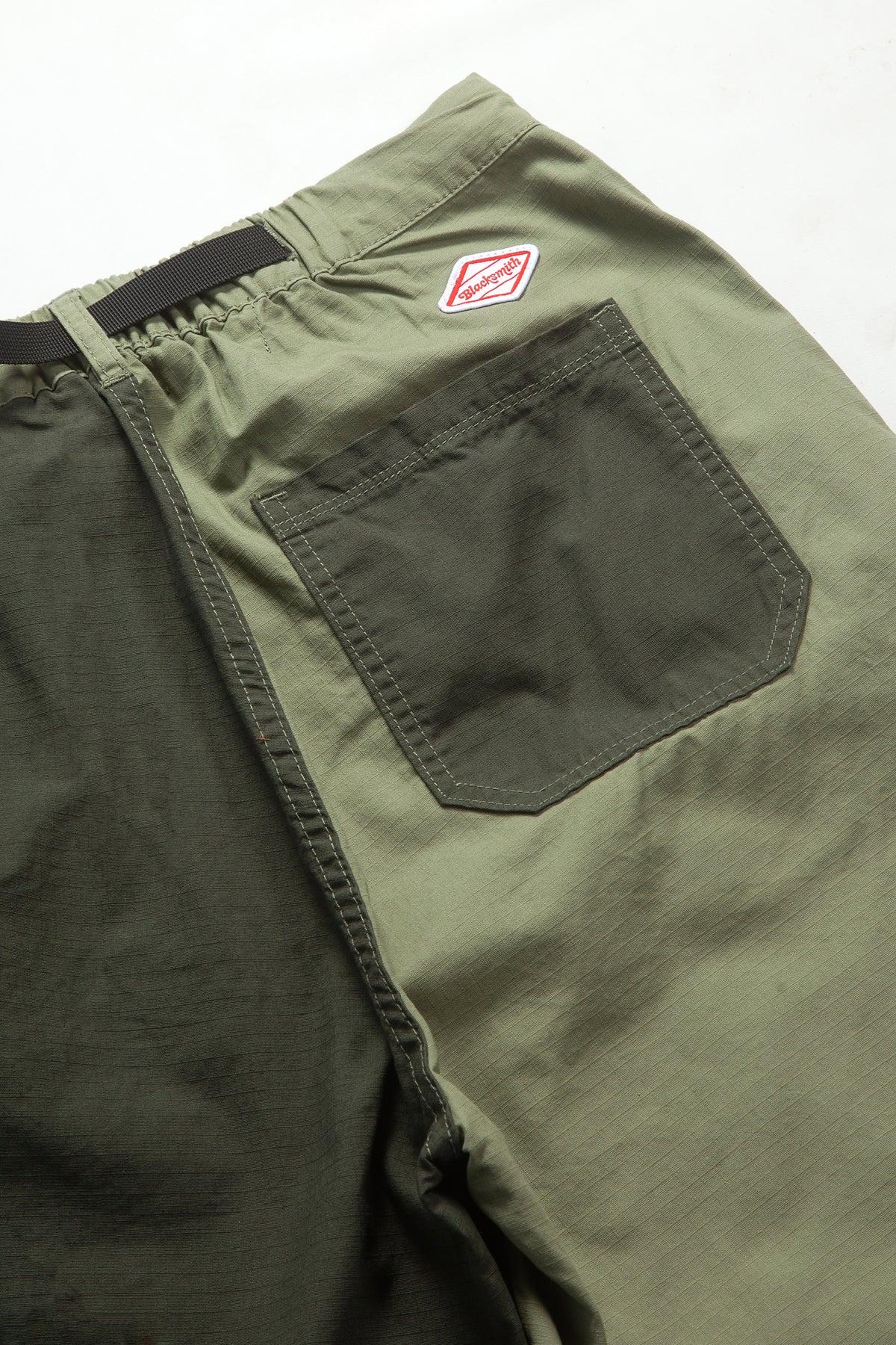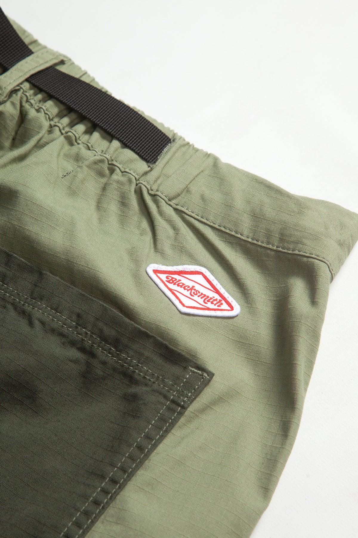 Ripstop Utility Shorts by Blacksmith, Cotton ripstop construction, Raised seam velcro pockets, Embroidered patch above rear pocket, Contrast panels, Adjustable waist cord