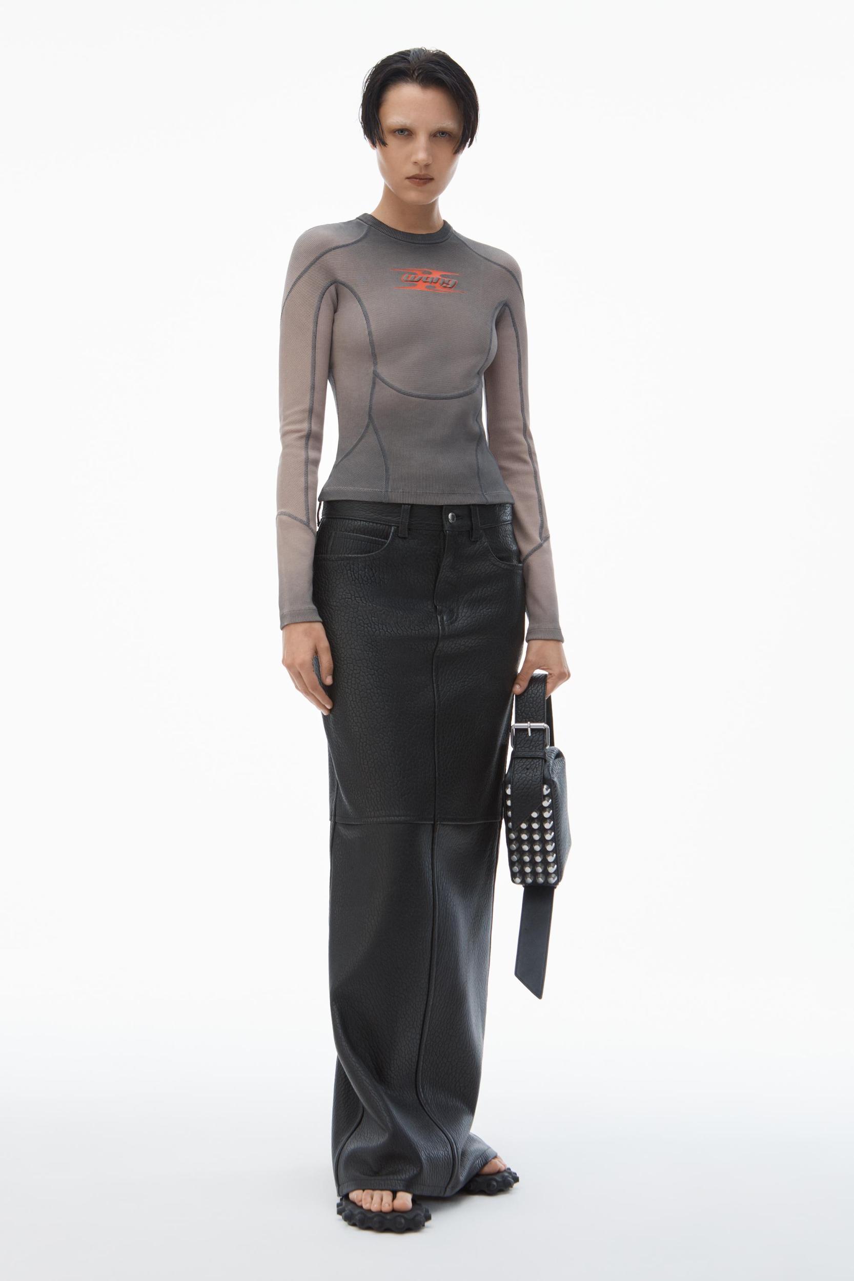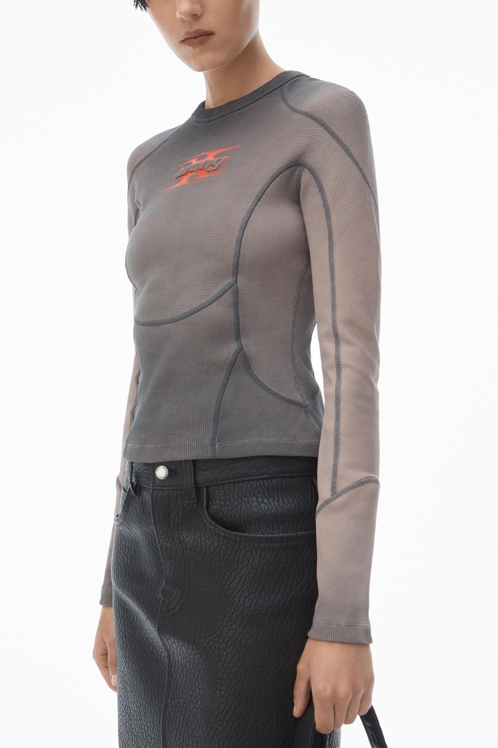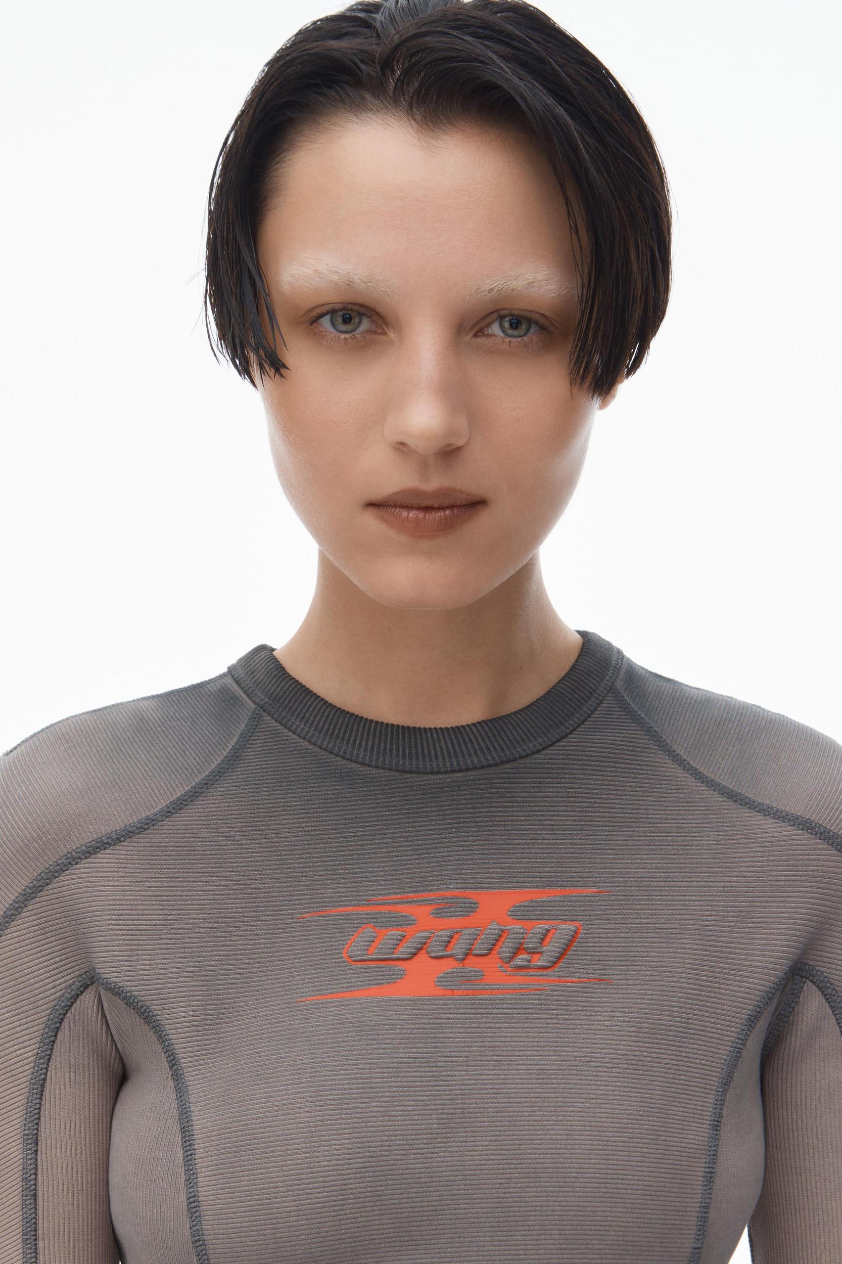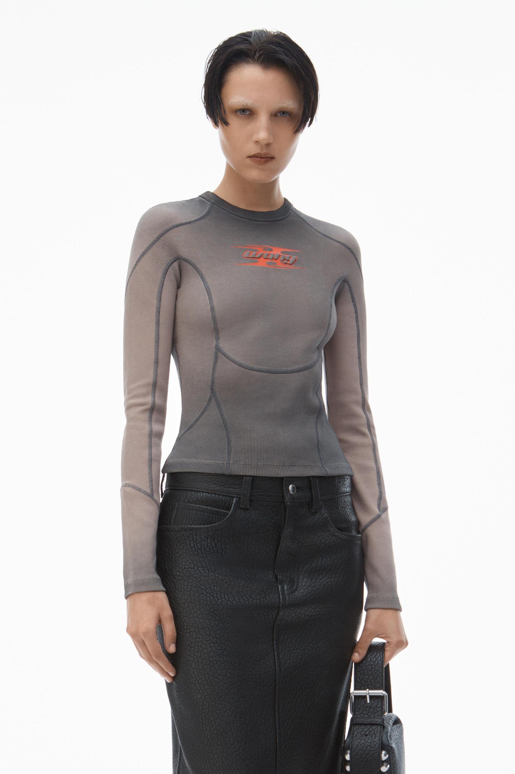 A contrast blade logo at the front and seam detailing along the bodice and sleeves accent this long-sleeve cotton-blend top in washed cedar.