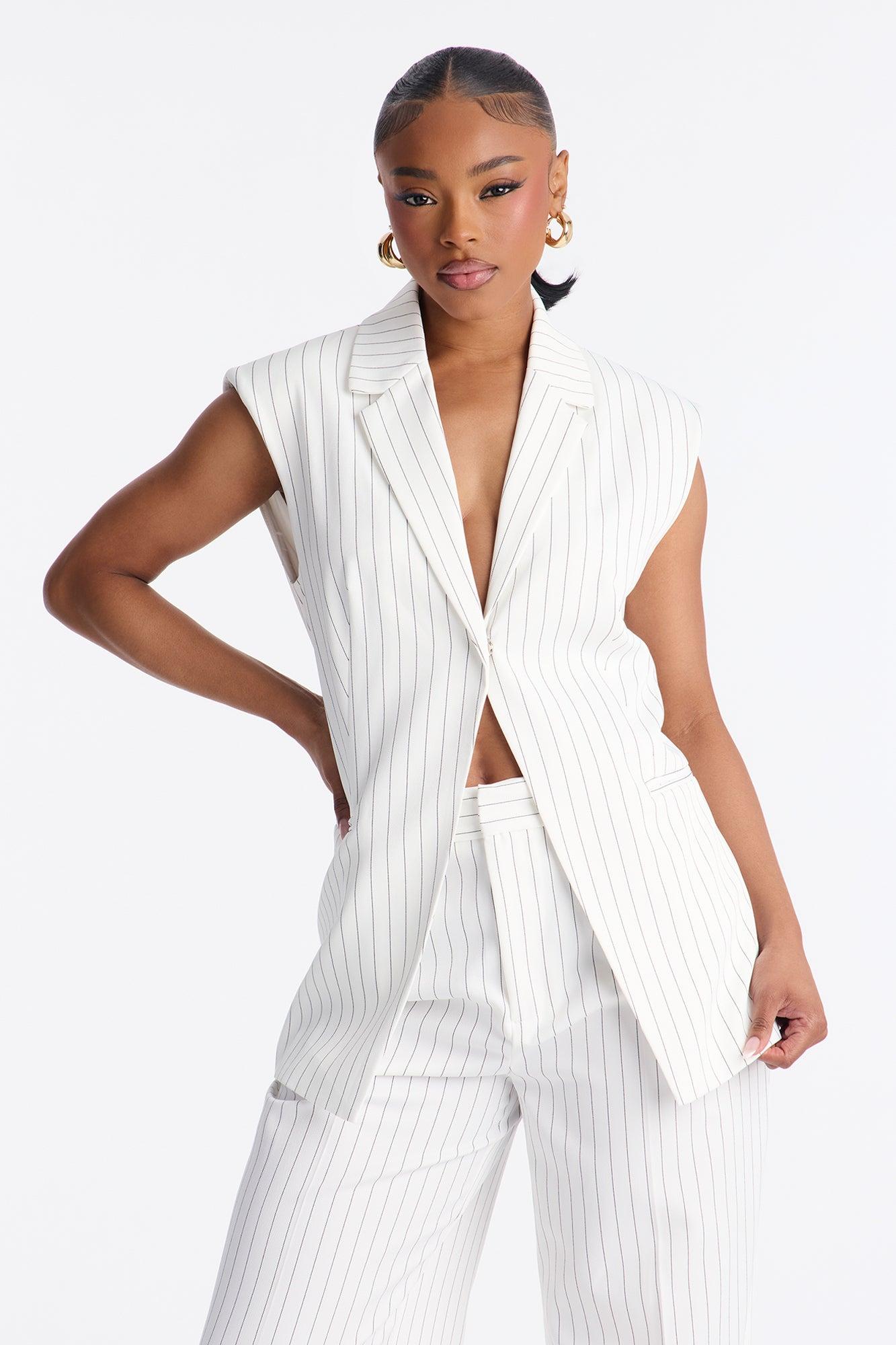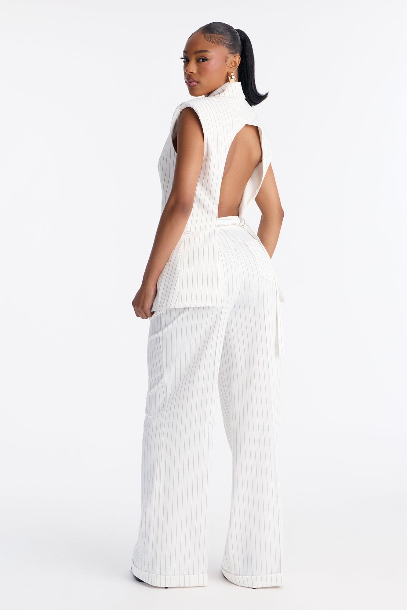 Blair Backless Vest Pinstripe Pant Set - White/combo Female