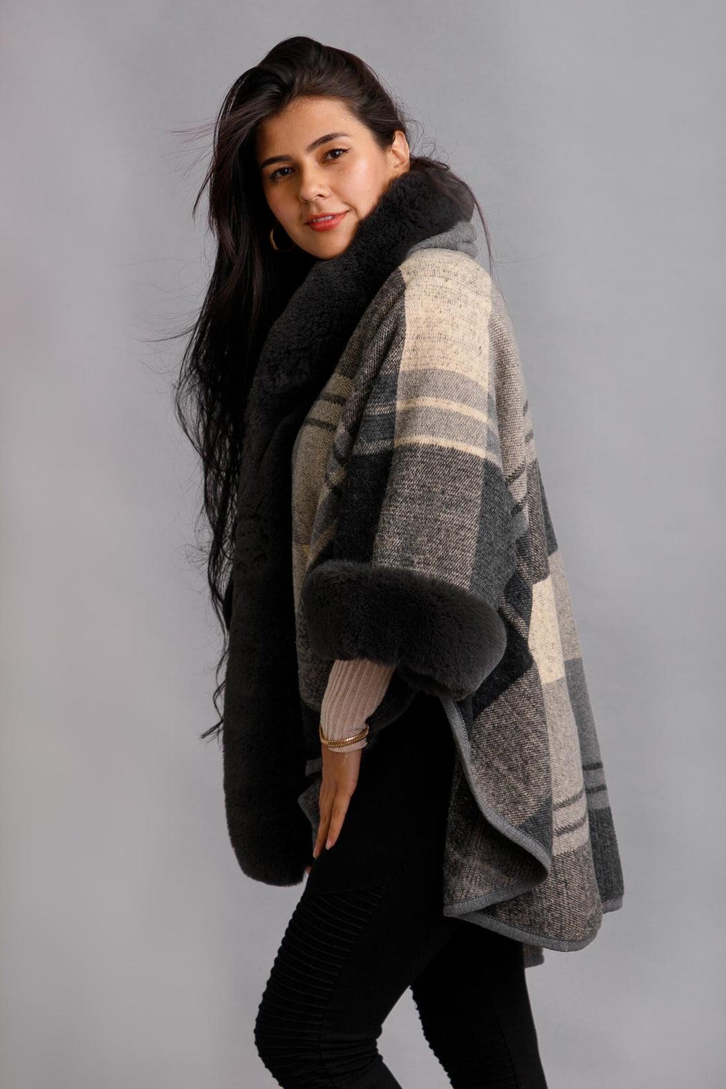 "A wonderful mix of style and comfort, our Blair Faux Fur Plaid kimono will be a chic addition to your fall wardrobe. Plaid patterns and faux fur detailing add to its luxurious look. Tailored in lightweight and wrinkle-free fabric, it's as comfortable as delightful it looks. Material: Fabric 100% ACRYLIC, Fur 100% POLYESTER Size: Length:-32 inch, Width:-46 inch