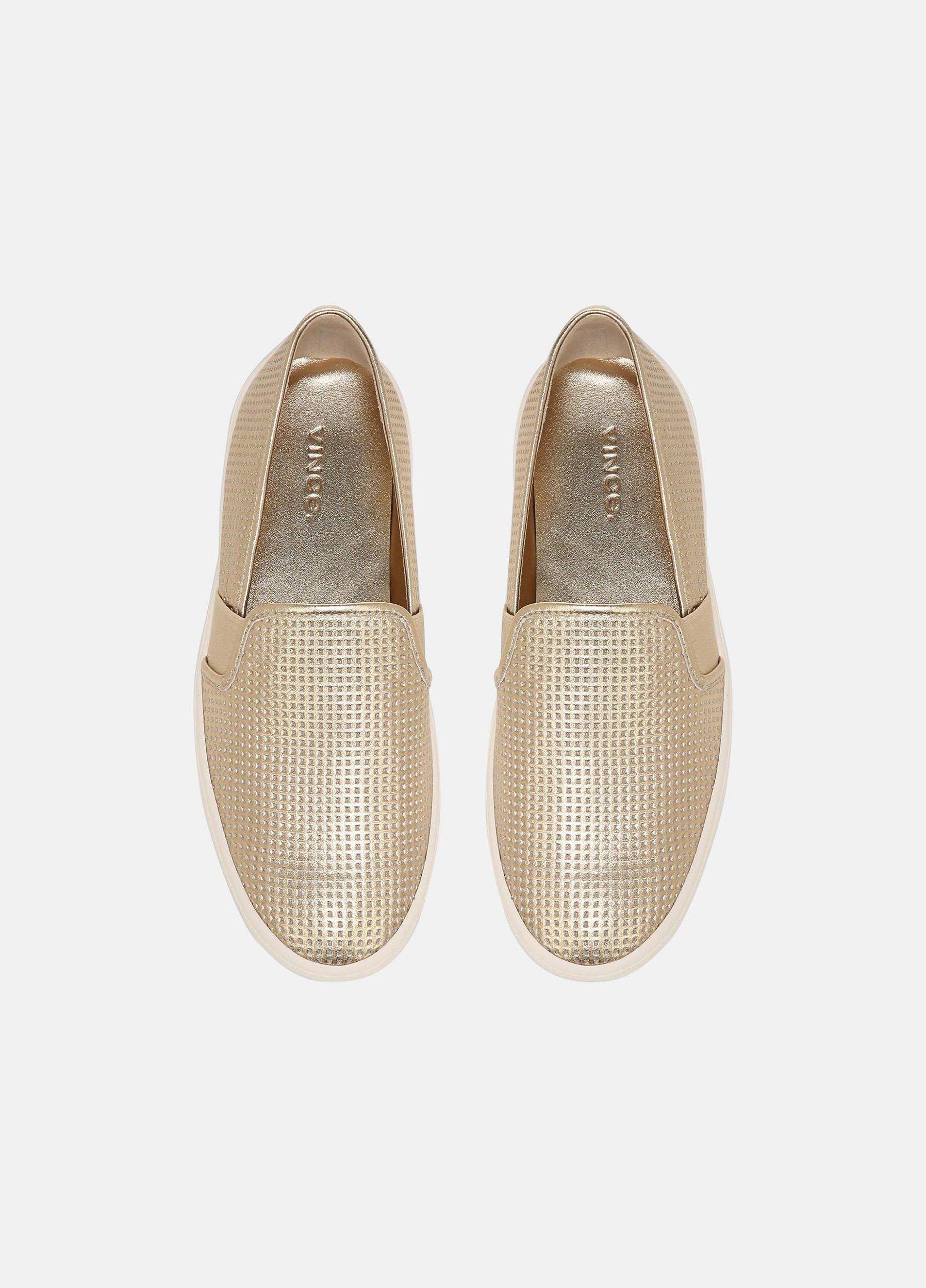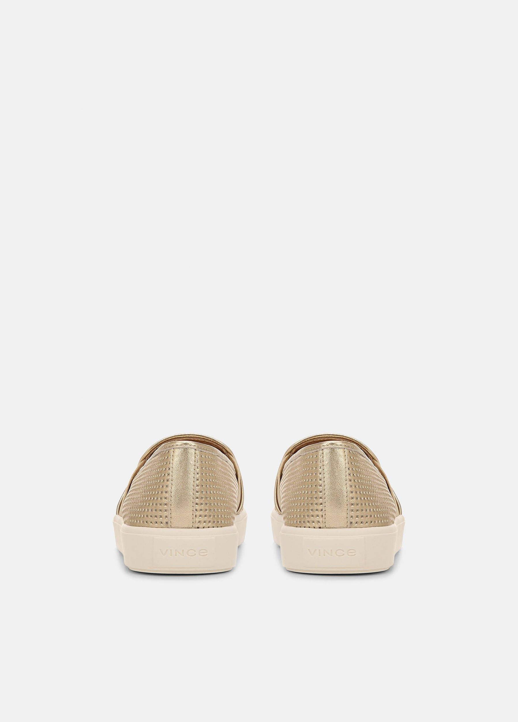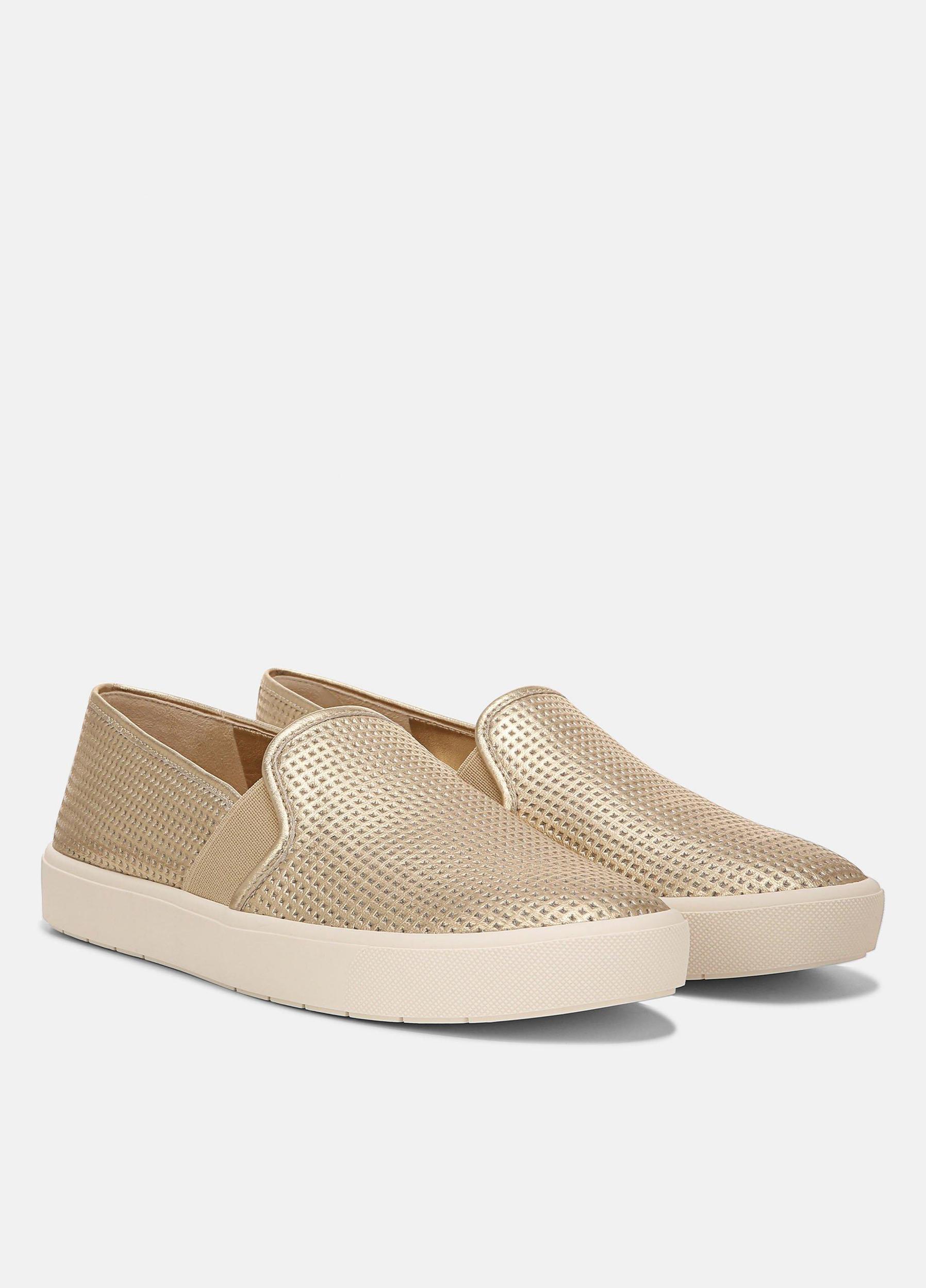 The signature Blair sneakers are made from perforated metallic leather. Elasticized sides ensure they slip on with ease.