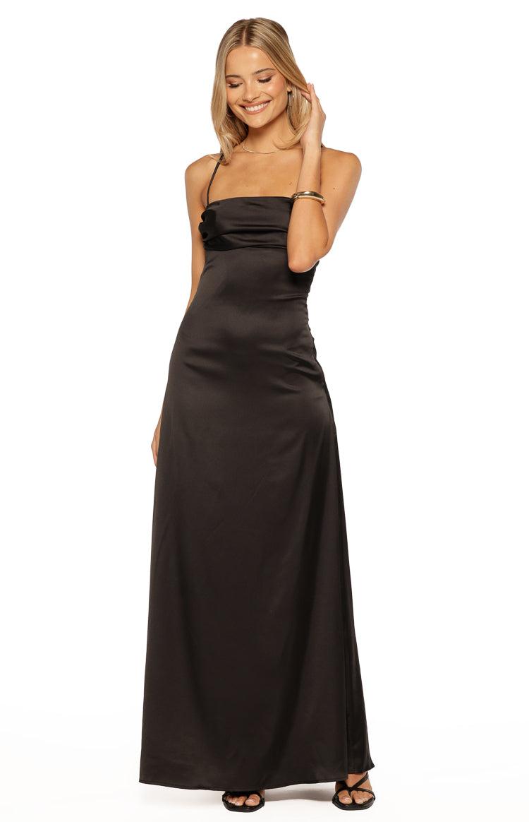 Black Satin Lace Up Maxi Dress How to style:Step into sophistication with the Blaise Black Satin Maxi Dress, a timeless staple for formal occasions. Designed in lightweight satin, it features a modern straight neckline and a captivating open back with adjustable lace-up detailing. Complete this elegant ensemble with black strappy heels and gold statement earrings. Features: Maxi length Straight neckline Invisible side zip Fully lined Open back Adjustable lace up back Lightweight satin material Perfect for formal events, prom, and graduation!