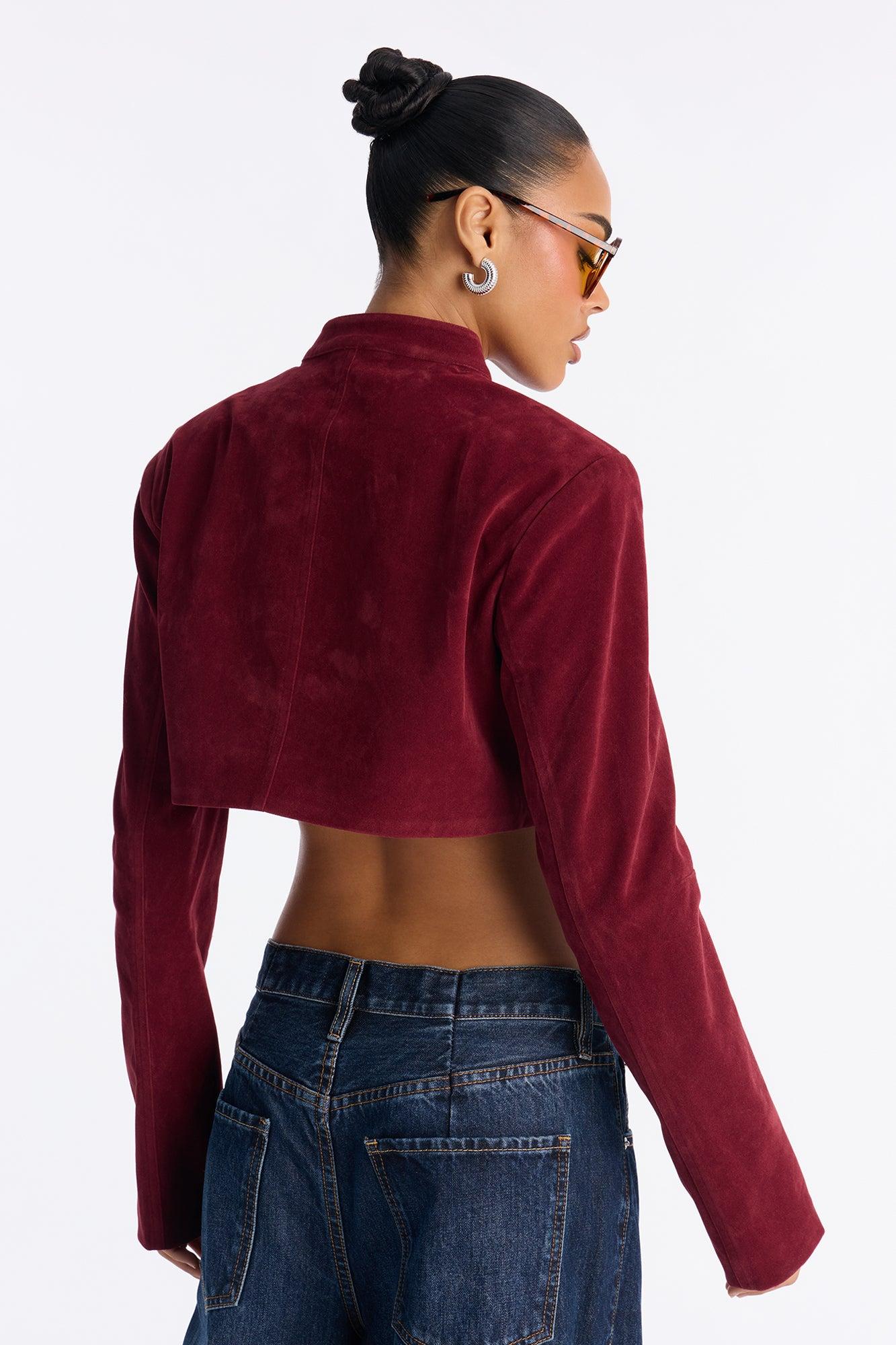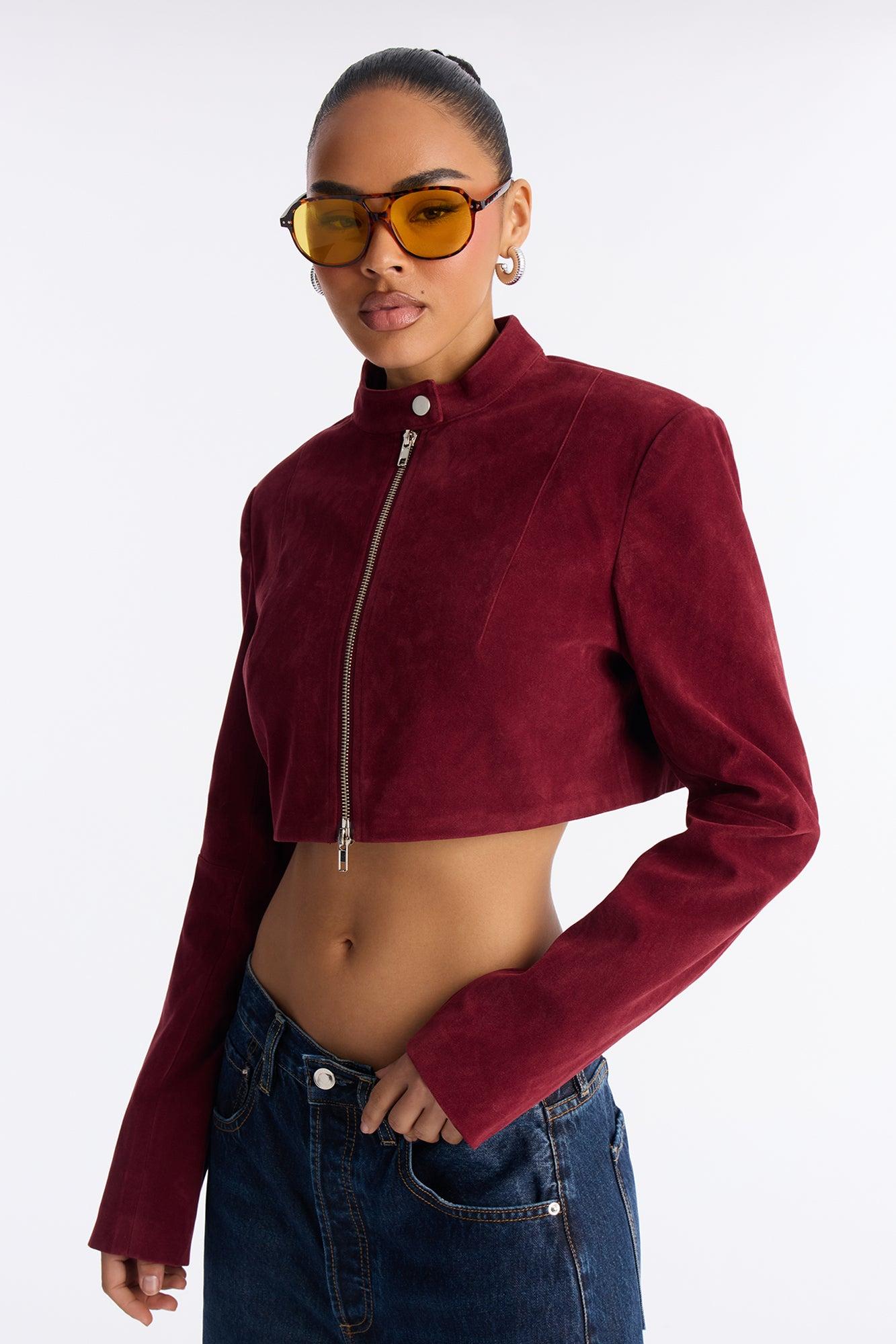 Blake Cropped Faux Suede Moto Jacket - Red Female