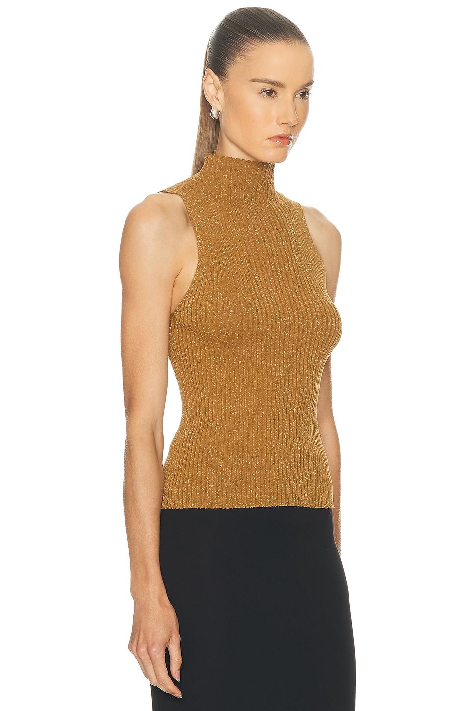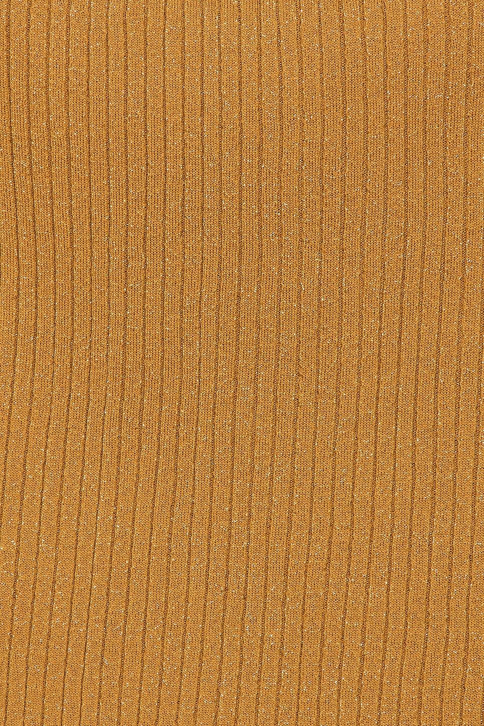 turtleneck79% nylon, 21% polyester / Made in China / Dry clean only / Turtleneck / Lettuce trim hem / Rib stretch knit textile with metallic fibers / Our Style No. LSEF-WK31 / Manufacturer Style No. LKT042A-BLAKE / Model is wearing size S.